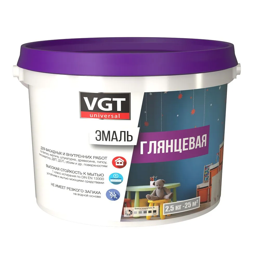 Эмаль ВГТ акриловая ВД-АК-1179 глянцевая универсальная супербелая база А 2,5кг