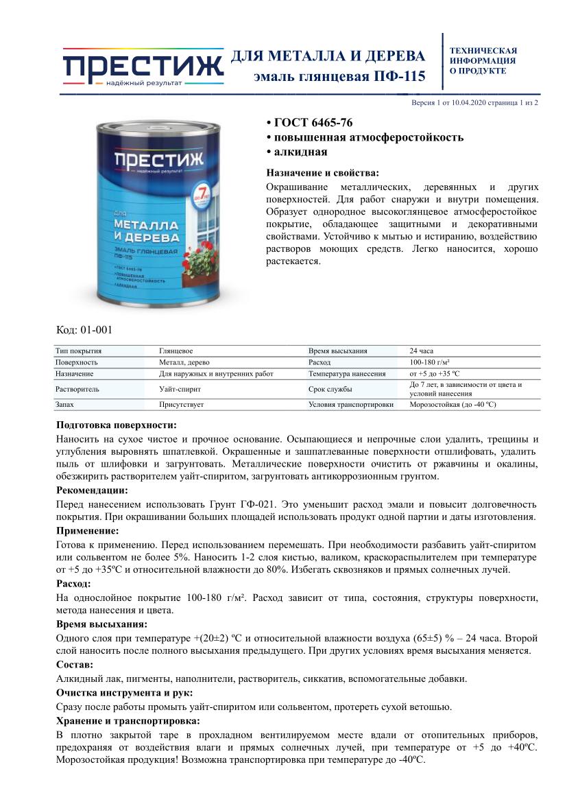 Свойства: легко наносится, хорошо растекается. После нанесения на поверхность образует однородное, глянцевое, непрозрачное покрытие, обладающее защитными и декоративными свойствами, стойкое к мытью и истиранию, действию растворов моющих средств. Повышенная атмосферостойкость, устойчива к перепадам температур -50°С…+60°С. Срок службы до 7 лет.