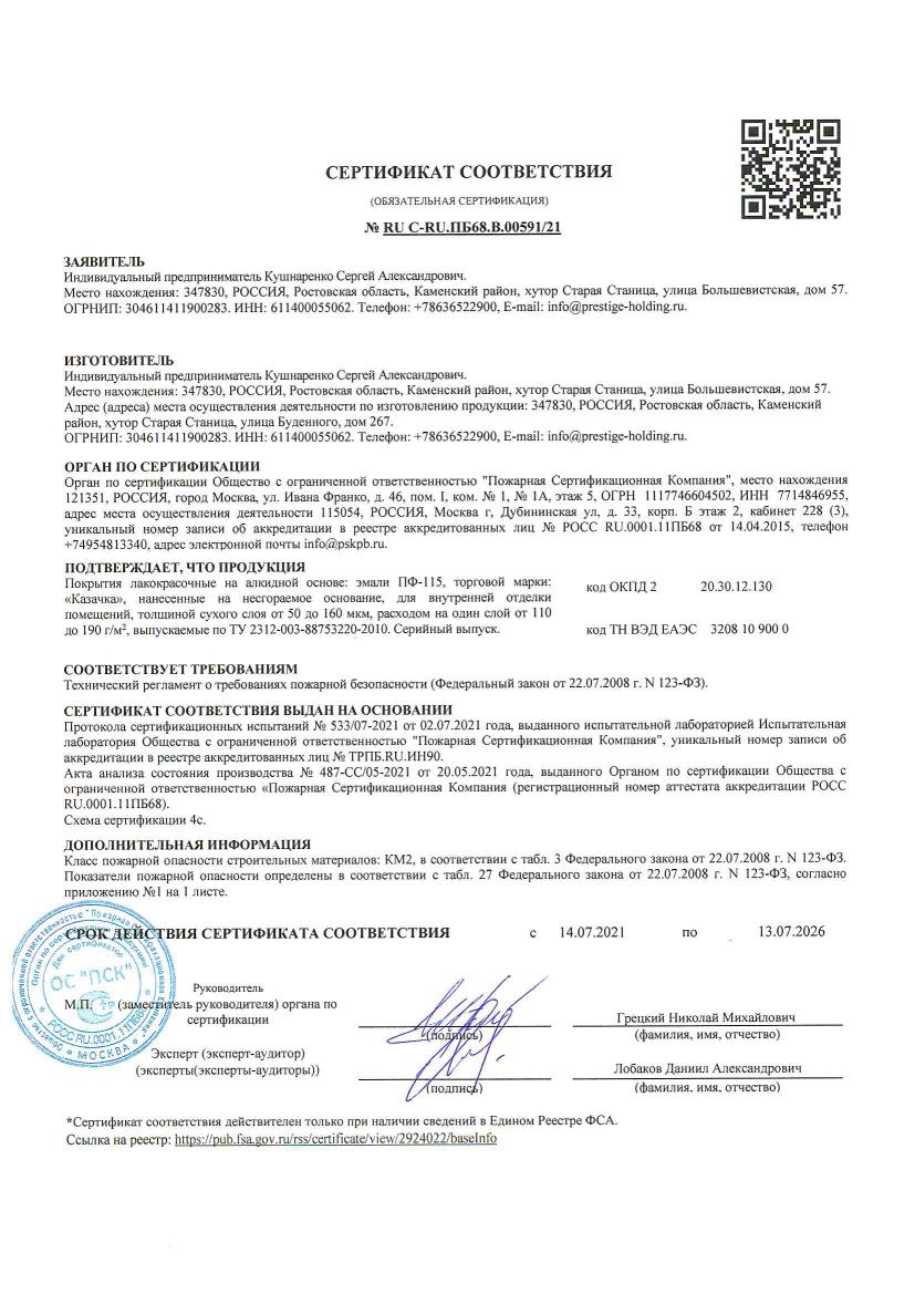 Эмаль КАЗАЧКА ПФ-115 оранжевая глянцевая 0,9кг