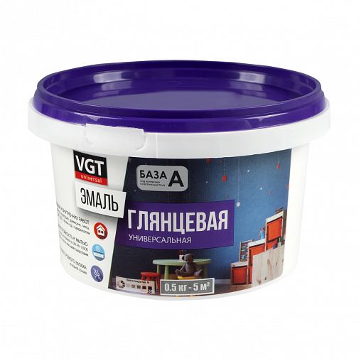Эмаль ВГТ акриловая ВД-АК-1179 глянцевая универсальная супербелая база А 0,5кг