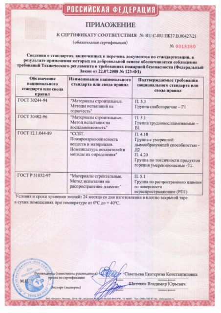 Высыхание: «до отлипа» - 1 час, полное – 24 часа, набор прочности – 2 недели.