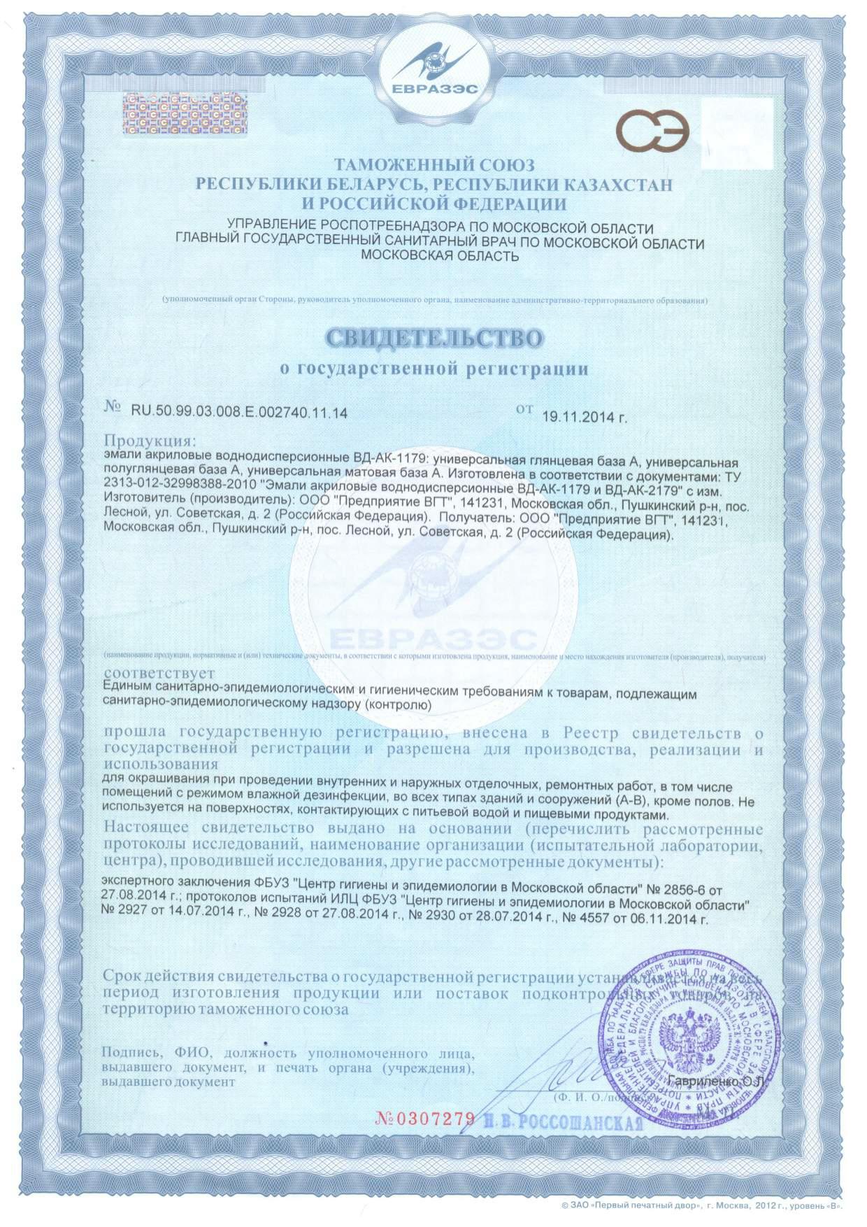 Эмаль ВГТ акриловая ВД-АК-1179 глянцевая васильковая RAL5010 1кг