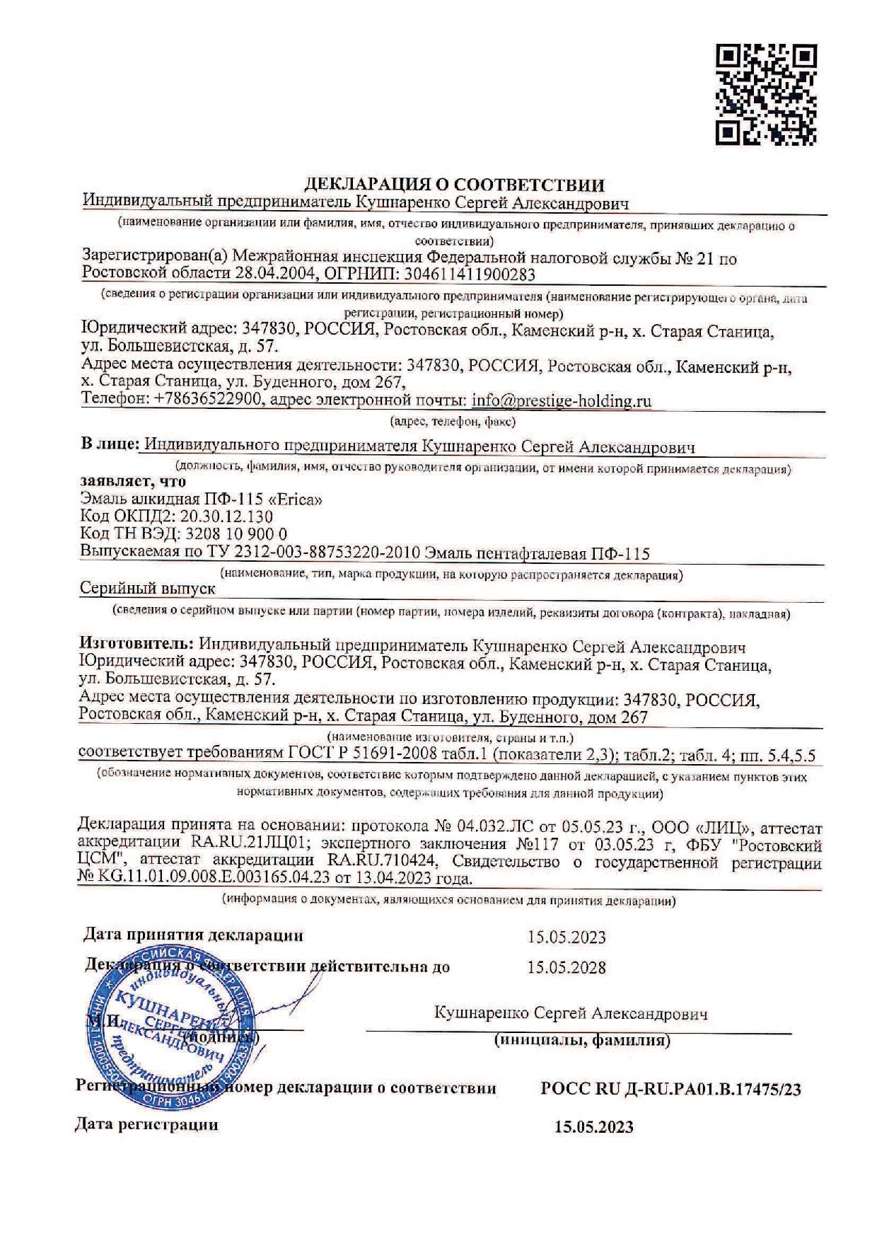 Эмаль ПФ-115 Erica шоколадная 1,8кг