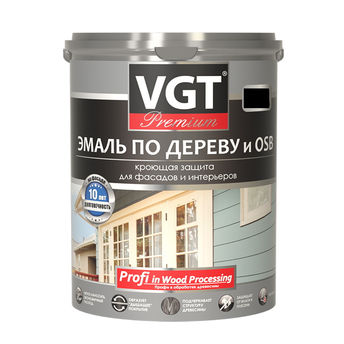 Эмаль ВГТ ВД-АК-1179 по дереву "Профи" черная 1 кг