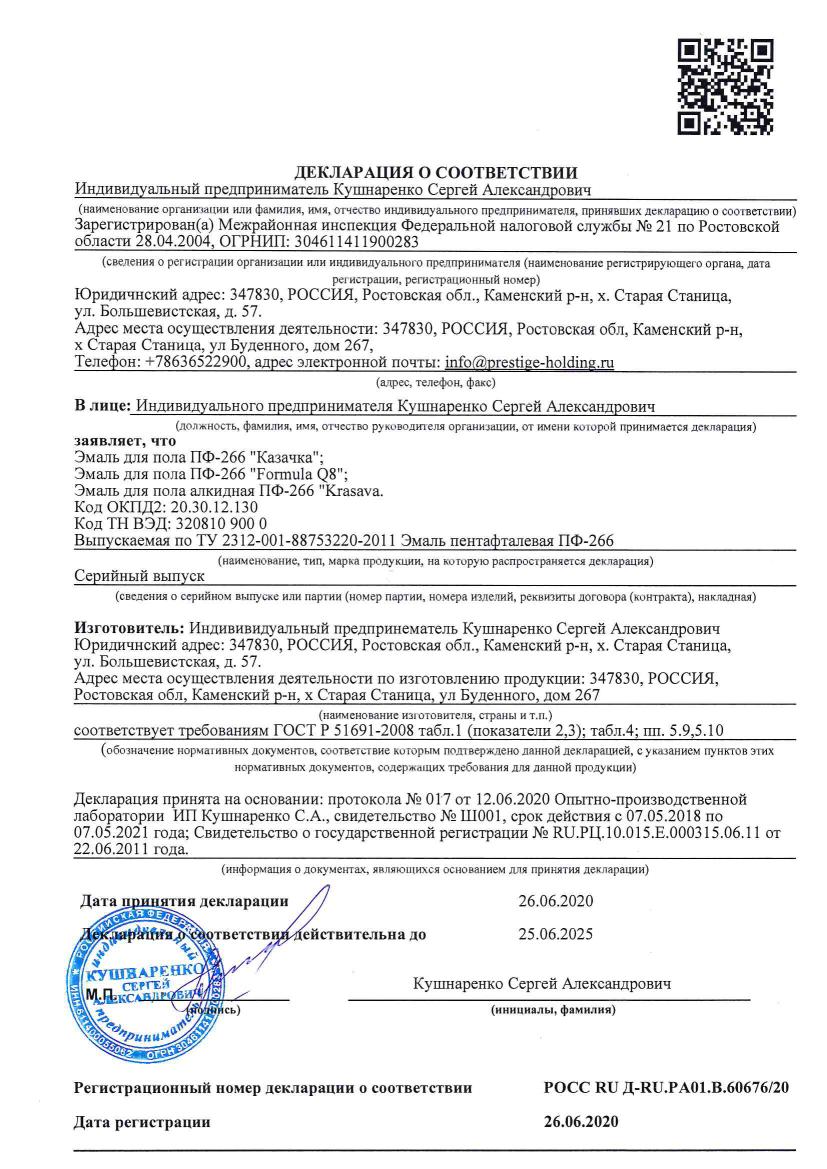 Добавить поверхностьОбработка окрашенных и неокрашенных полов из дерева, ДВП, ДСП. Для работ внутри помещения. Содержит добавки, повышающие блеск, твердость и износостойкость покрытия. Легко наносится, хорошо растекается. Глянцевая. После высыхания образует однородное защитно-декоративное покрытие, стойкое к мытью и воздействию растворов моющих средств. Выпускается различных цветов.