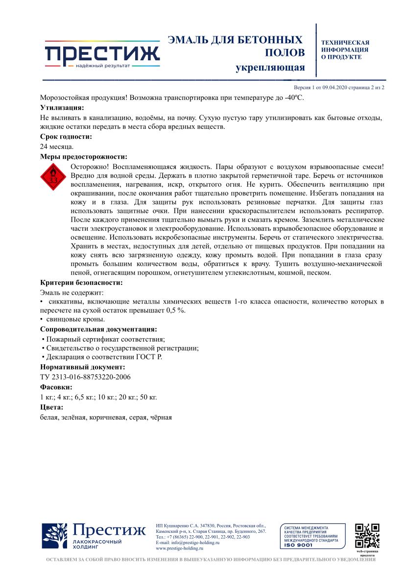 Эмаль ПРЕСТИЖ для бетонных полов укрепляющая серая 4кг