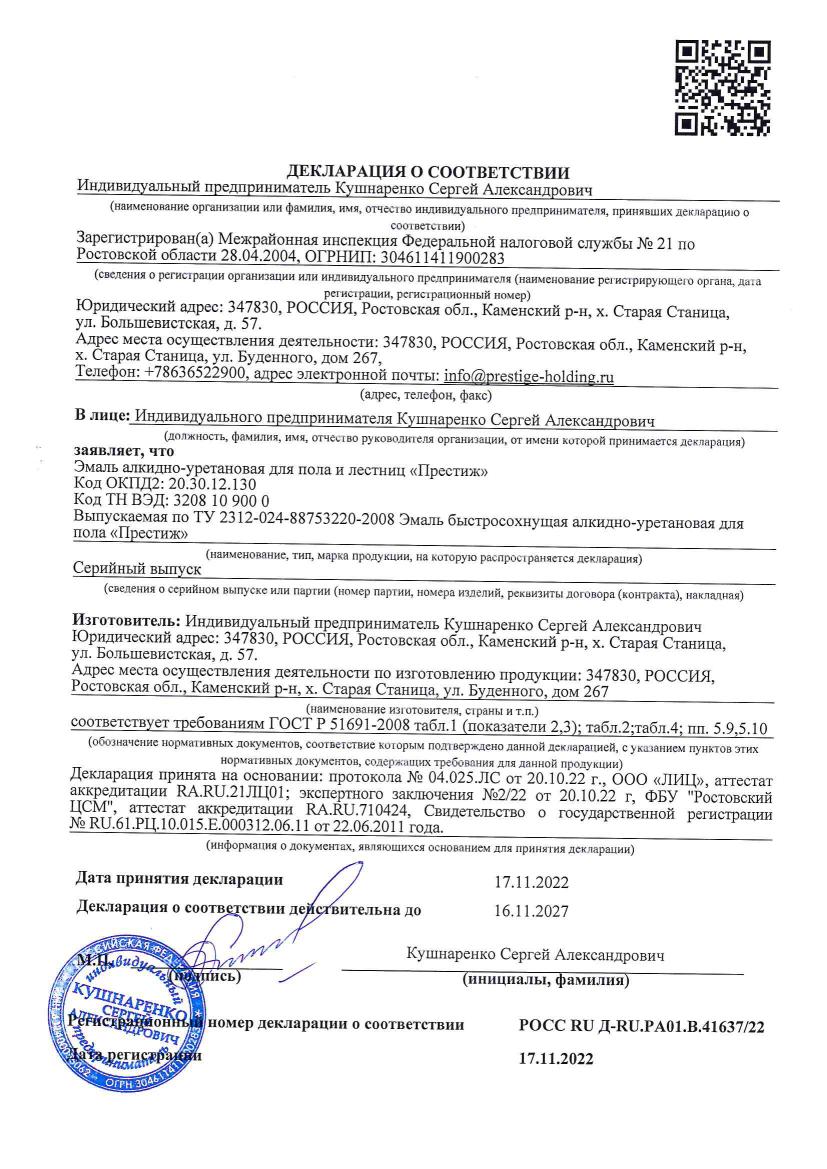 Эмаль ПРЕСТИЖ алкидно-уретановая для пола и лестниц быстросохнущая красно-коричневая 0,9кг