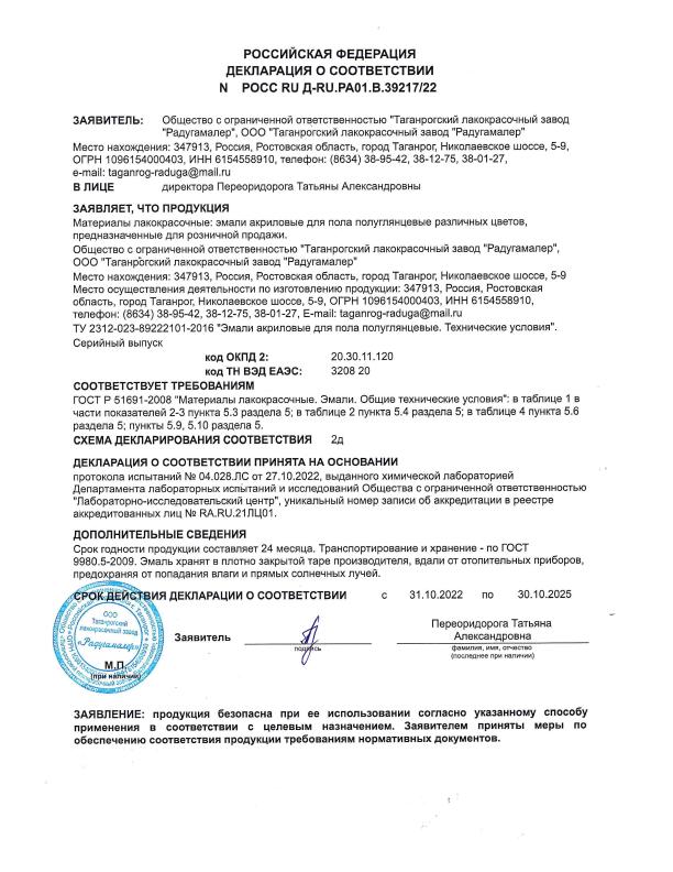 Добавить поверхностьСостав: акриловый сополимер, восковая эмульсия, пигменты, минеральные наполнители, функциональные добавки, вода.