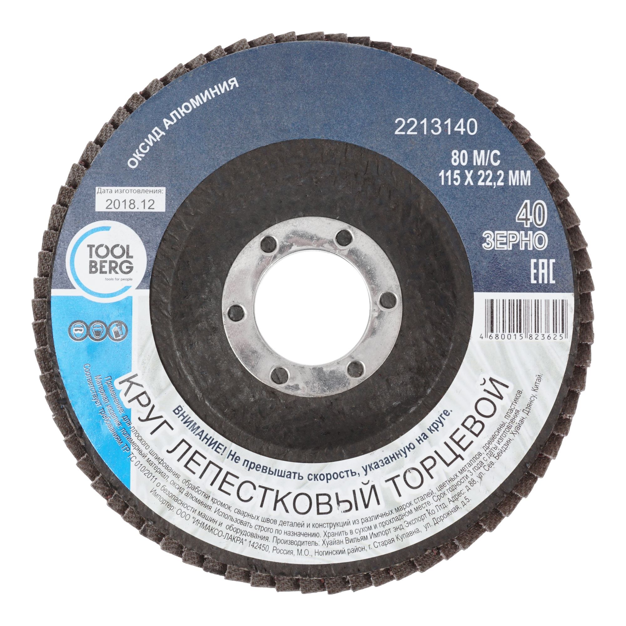 Круг лепестковый торцевой 115х22 Р40, оксид алюминия "TOOLBERG"