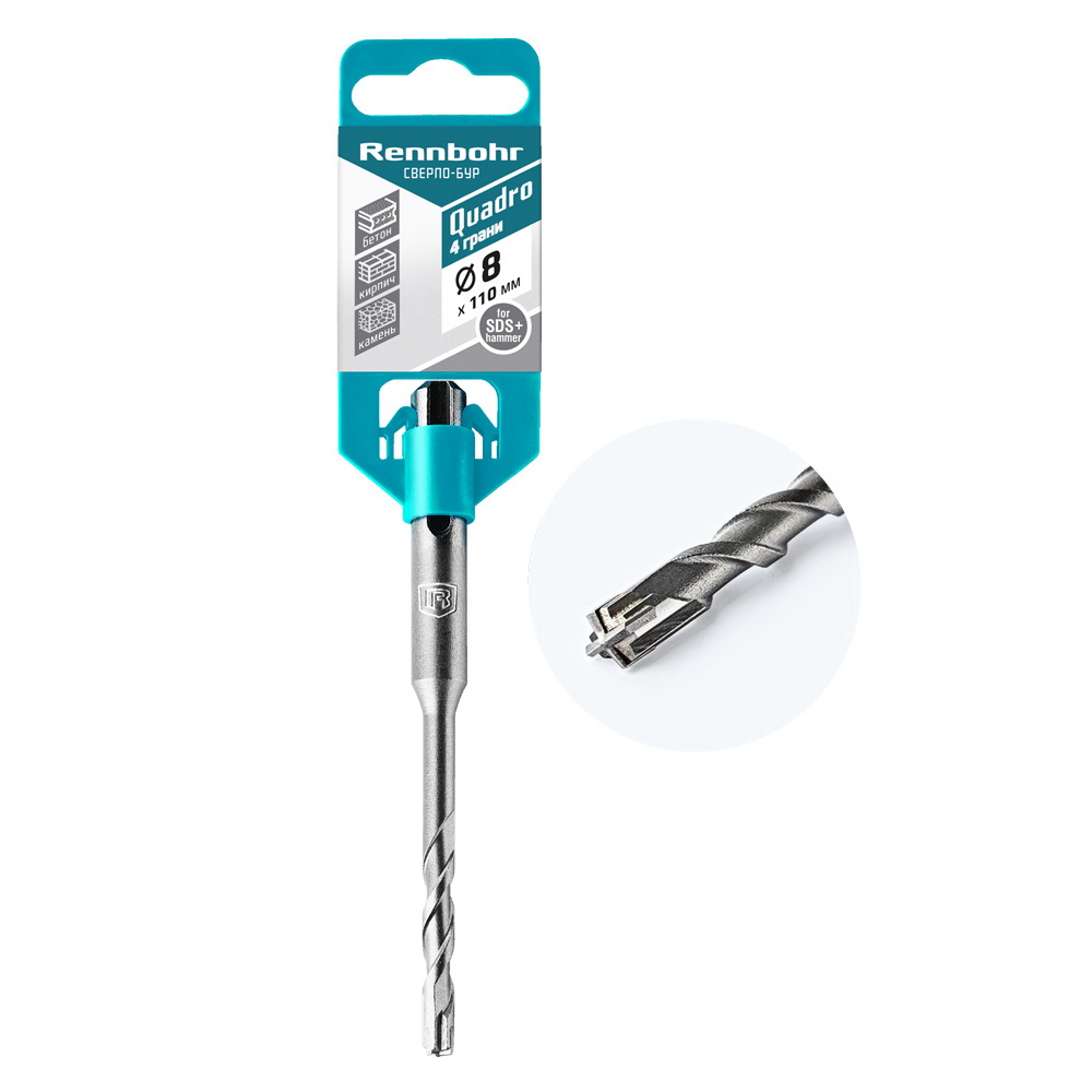Бур по бетону SDS+ 8х110 4 грани Rennbohr Quadro