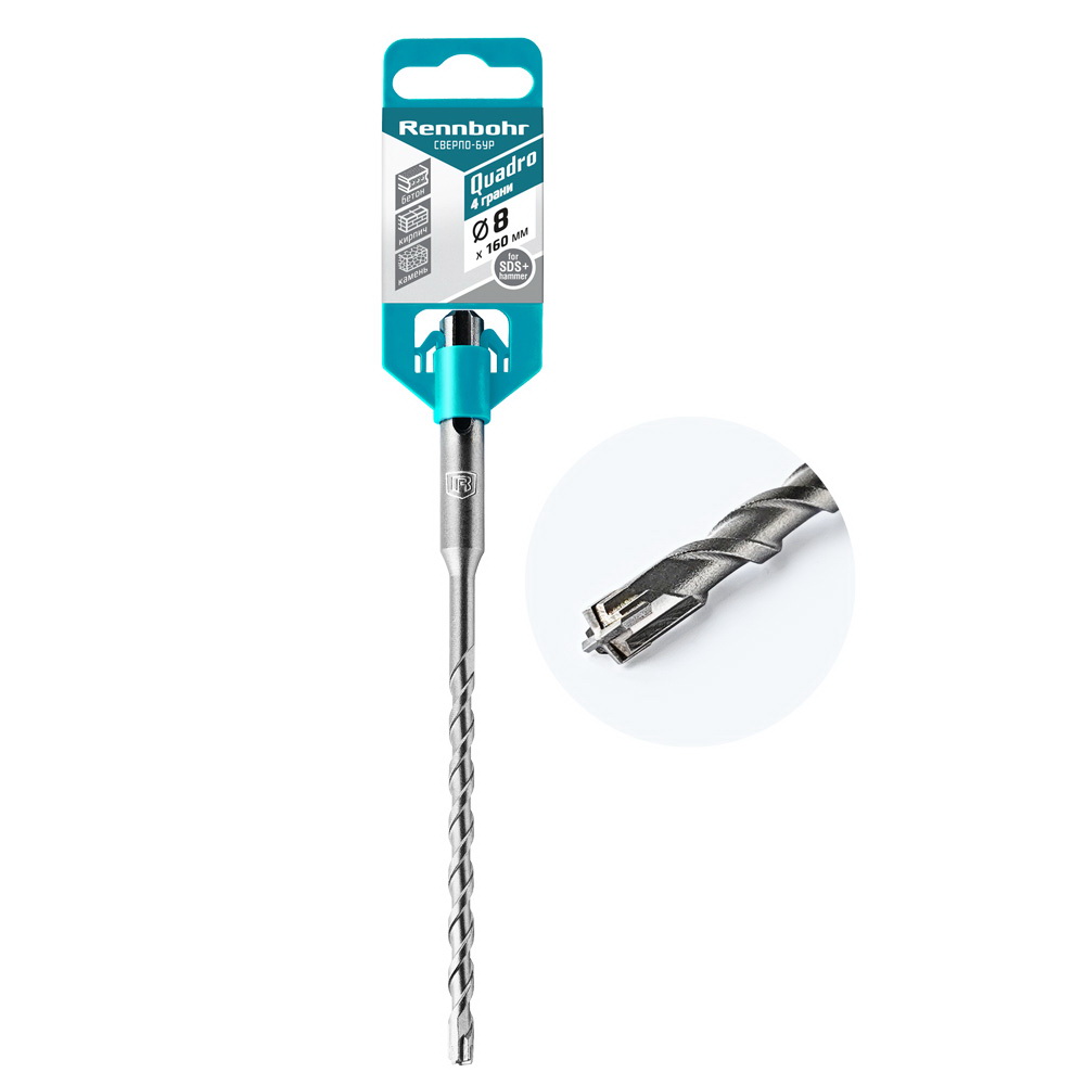Бур по бетону SDS+ 8х160 4 грани Rennbohr Quadro