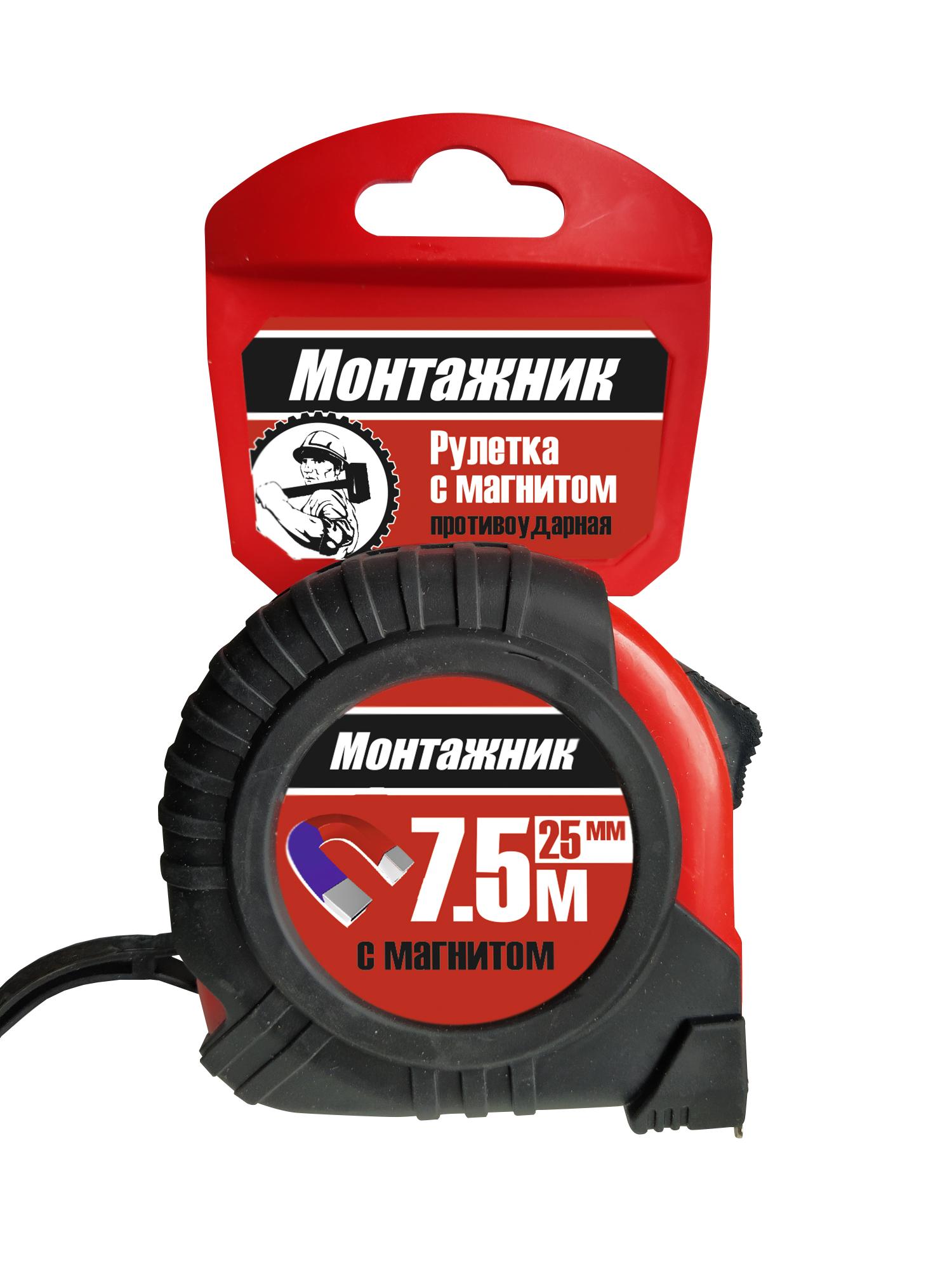 Рулетка с магнитом 7,5 м х 25 мм "Монтажник"
