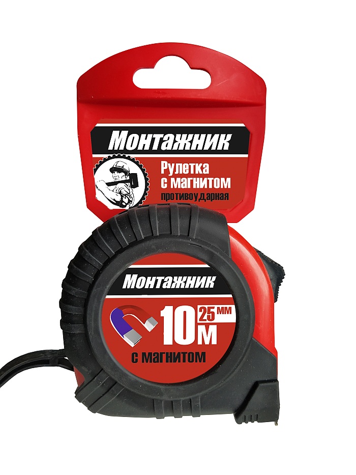 Рулетка с магнитом 10 м х 25 мм "Монтажник"