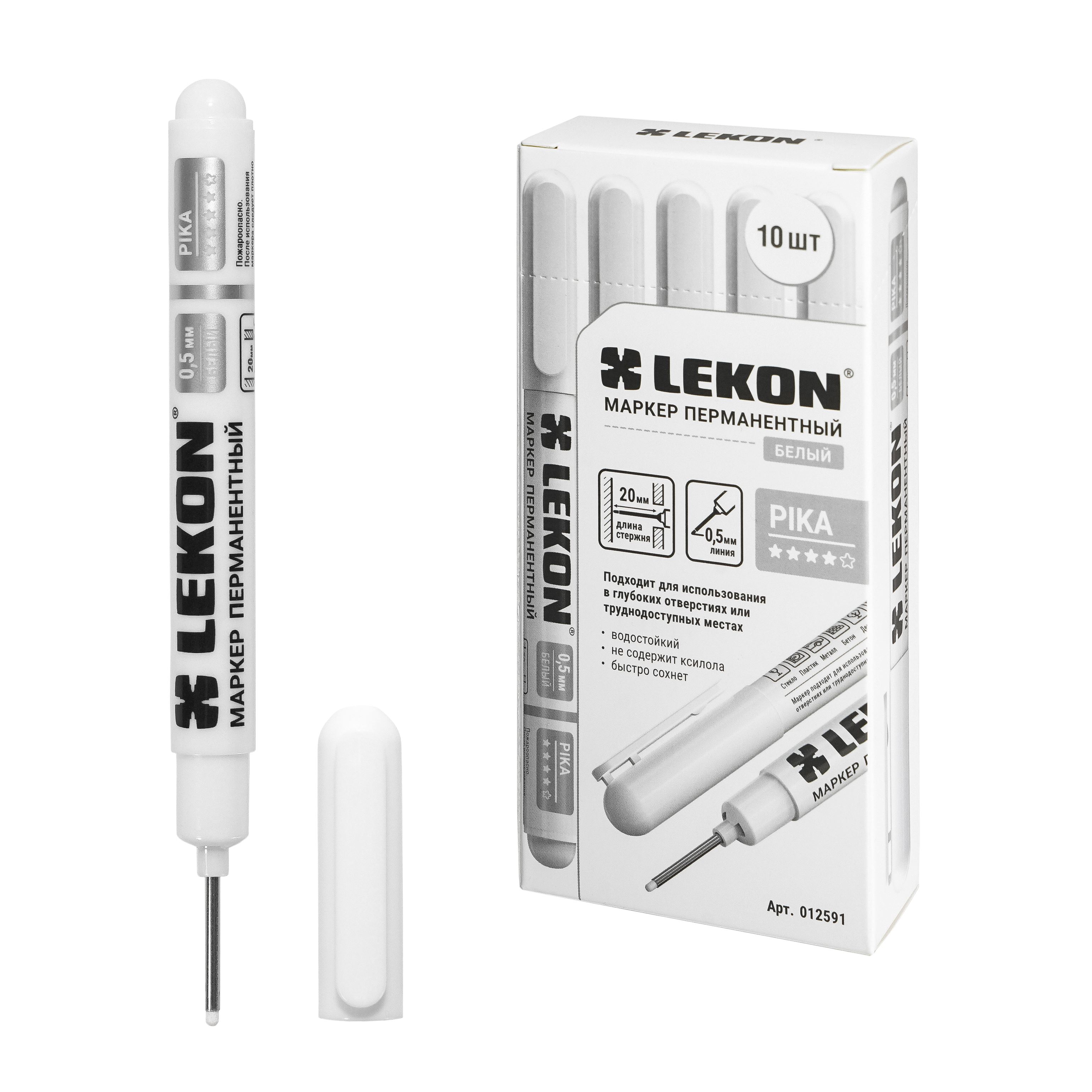 Маркер LEKON Pika Перманентный, удлиненный наконечник цвет белый