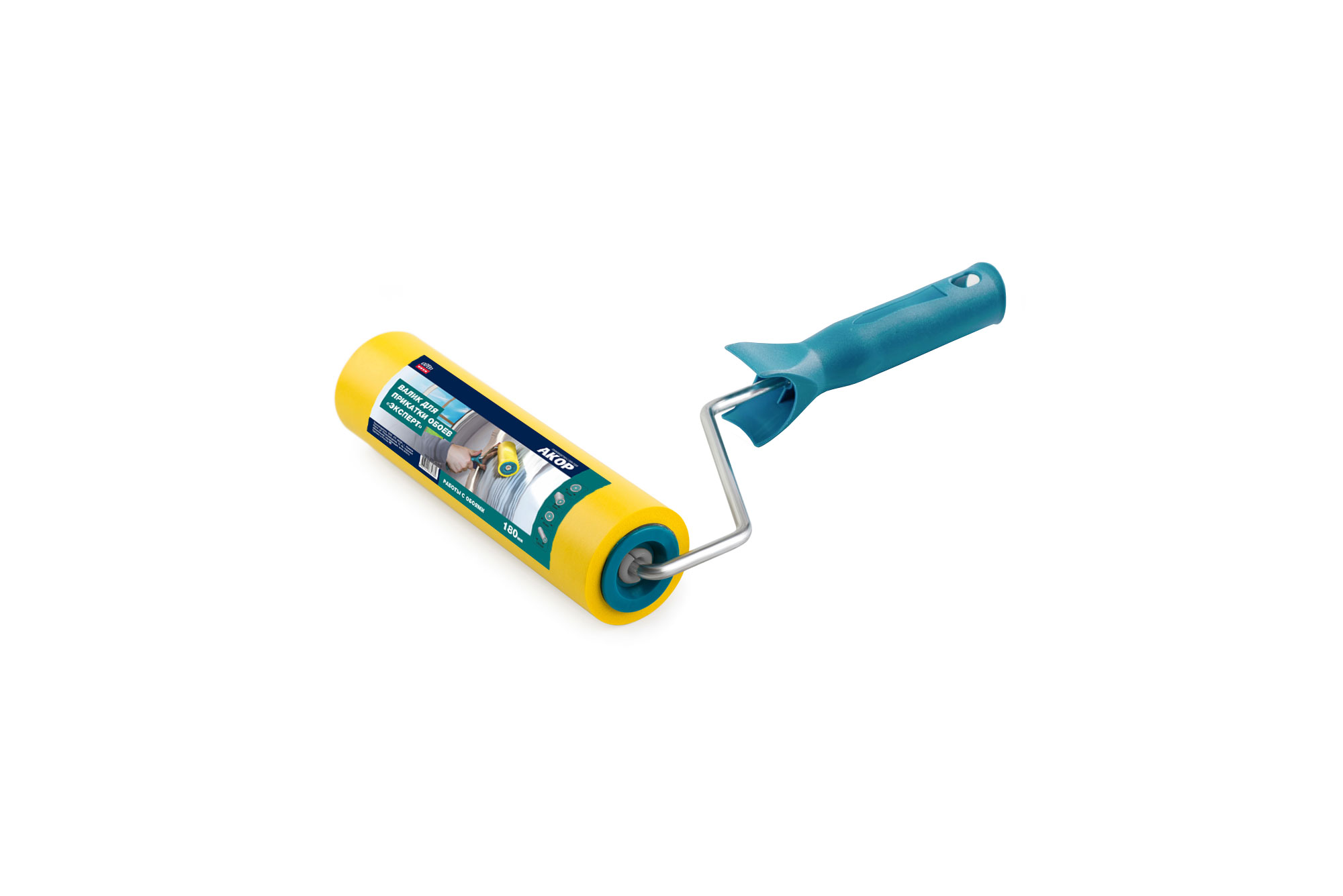Валик для прикатки обоев 180 мм Эксперт резиновый, бюгель d 6 мм "Акор"