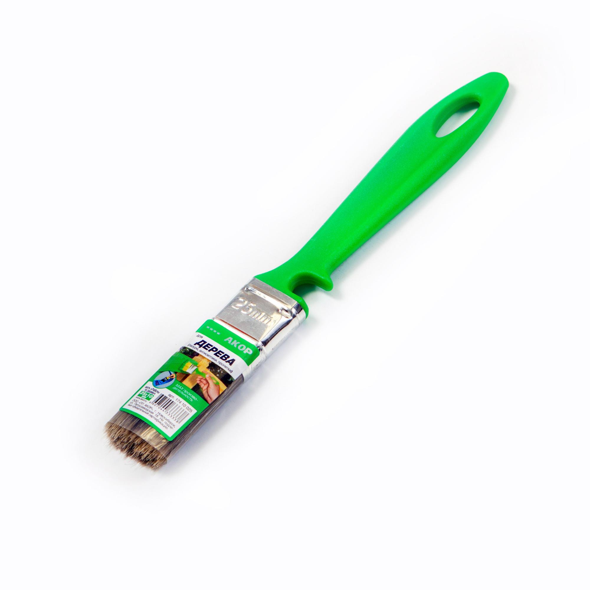 Кисть АКОР "Работы по дереву" 25*10 пластиковая зеленая ручка, смешанная щетина