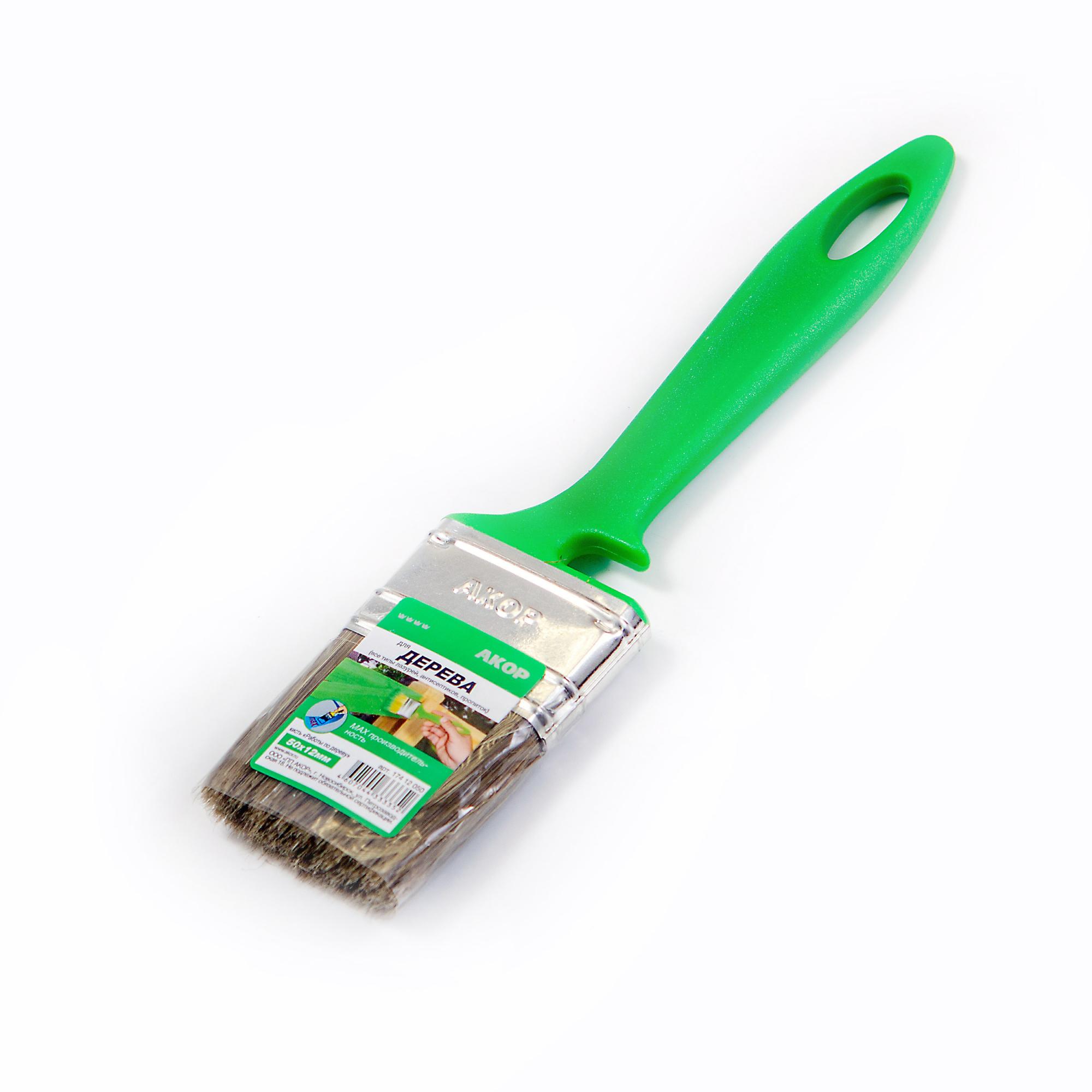 Кисть АКОР "Работы по дереву" 50*12 пластиковая зеленая ручка, смешанная щетина