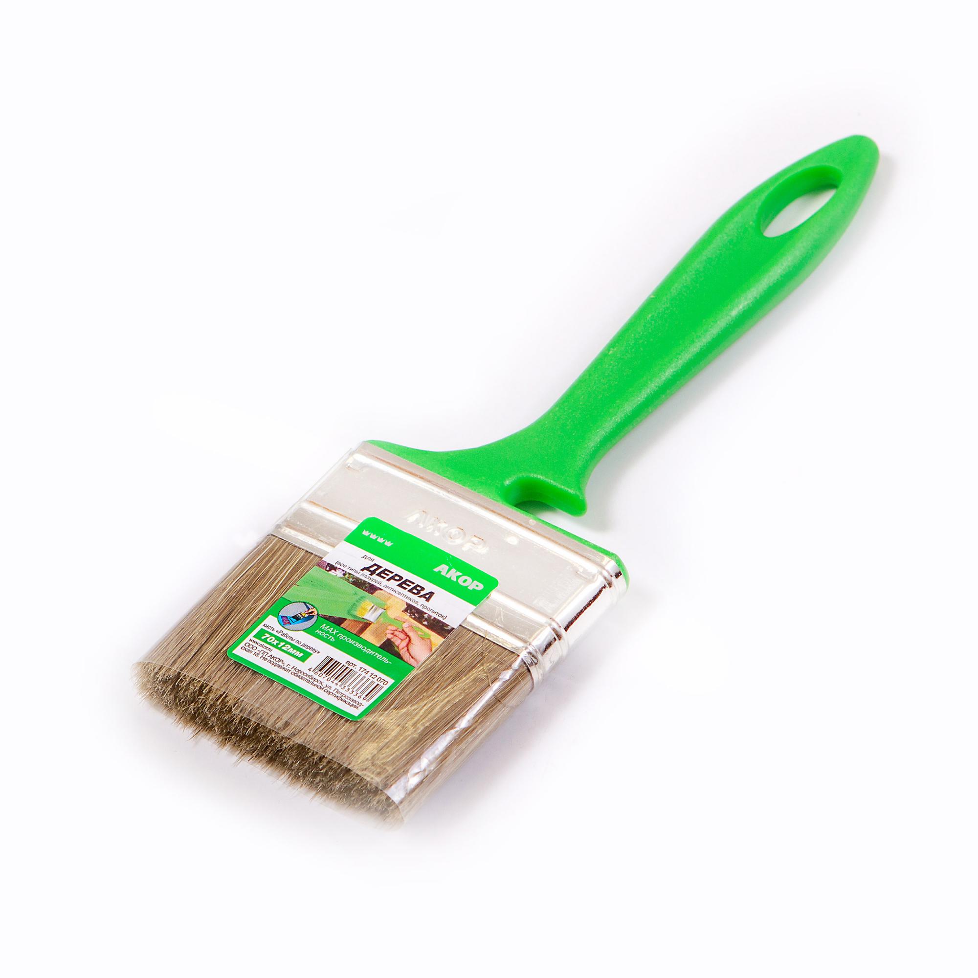 Кисть АКОР "Работы по дереву" 70*12 пластиковая зеленая ручка, смешанная щетина