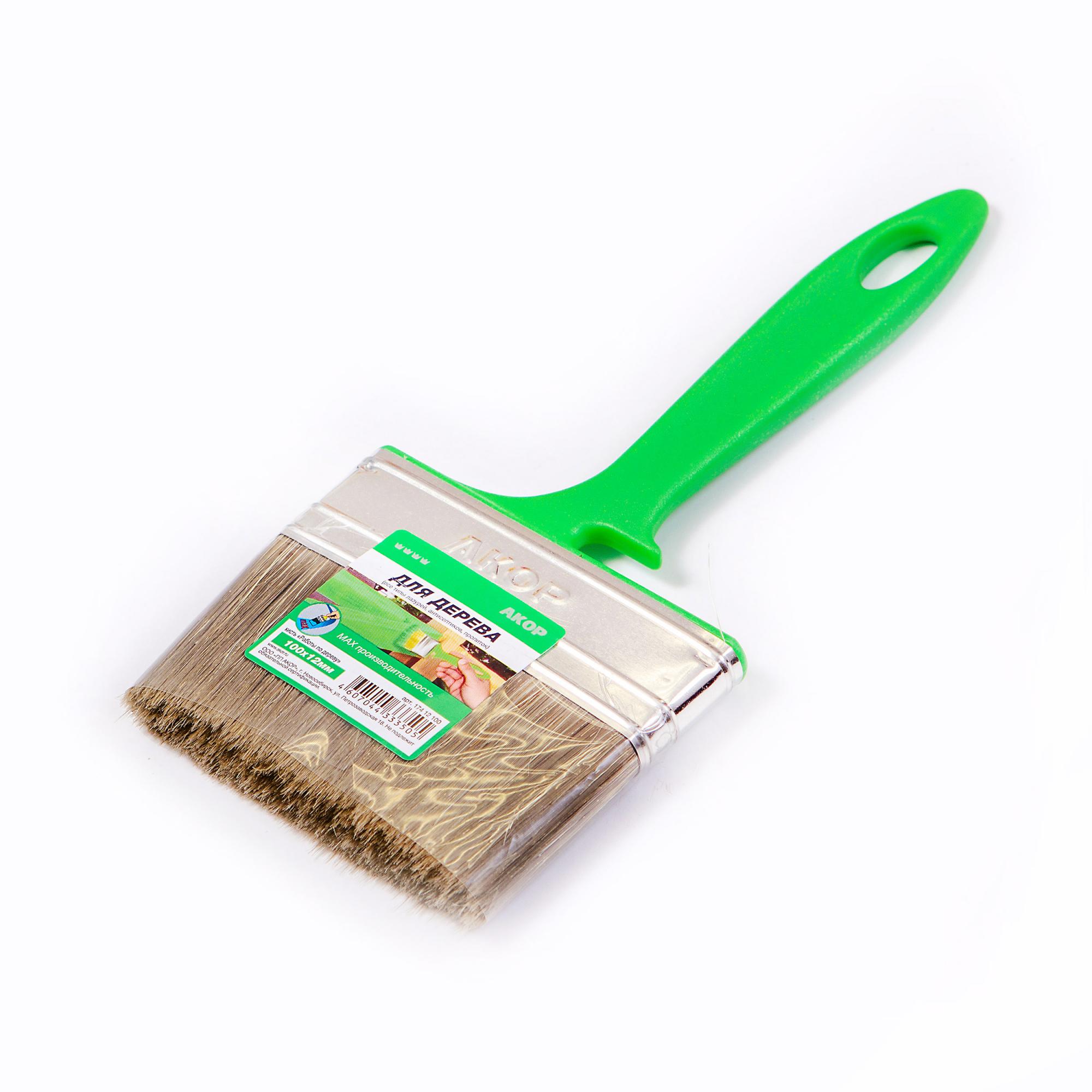 Кисть АКОР "Работы по дереву" 100*12 пластиковая зеленая ручка, смешанная щетина