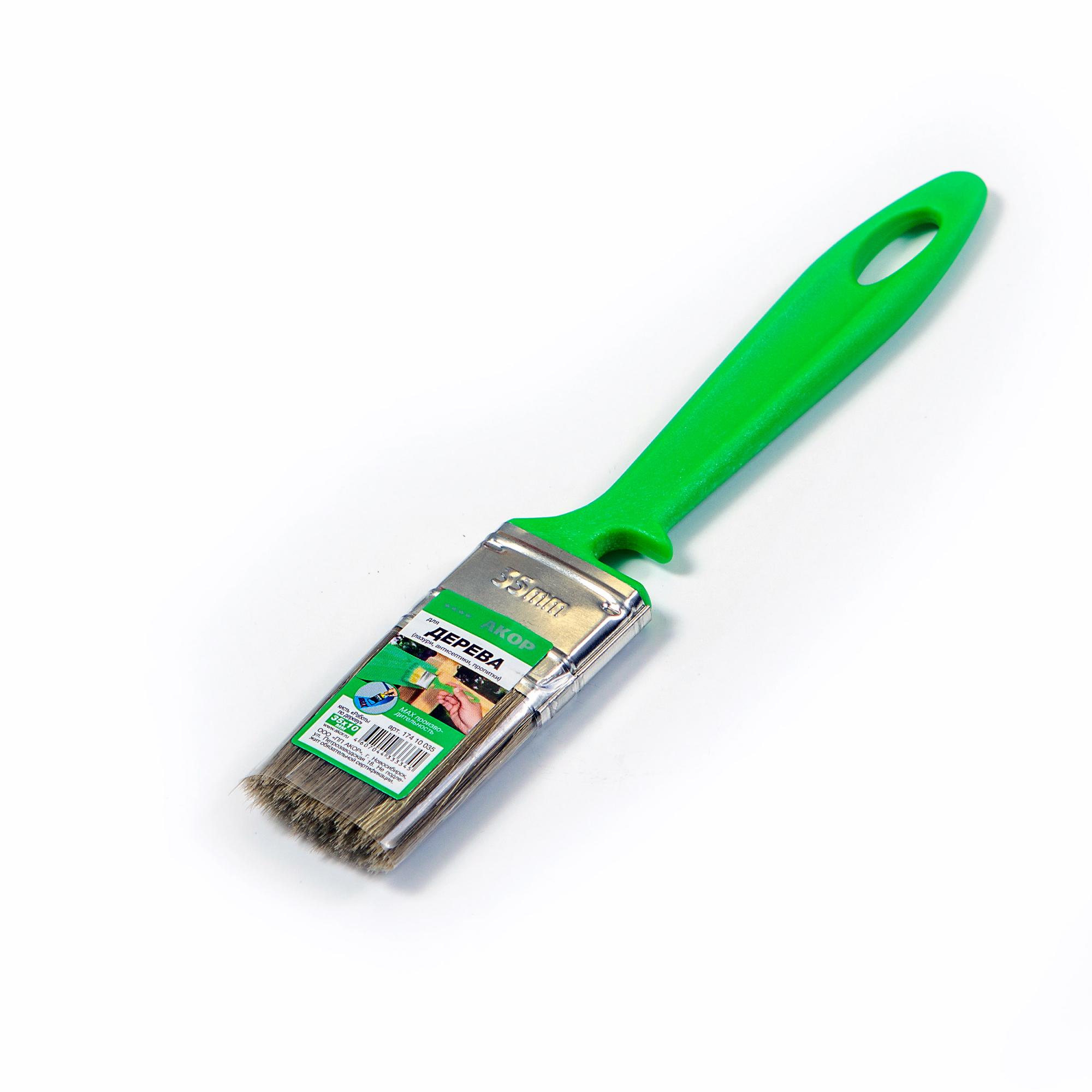 Кисть АКОР "Работы по дереву" 35*10 пластиковая зеленая ручка, смешанная щетина