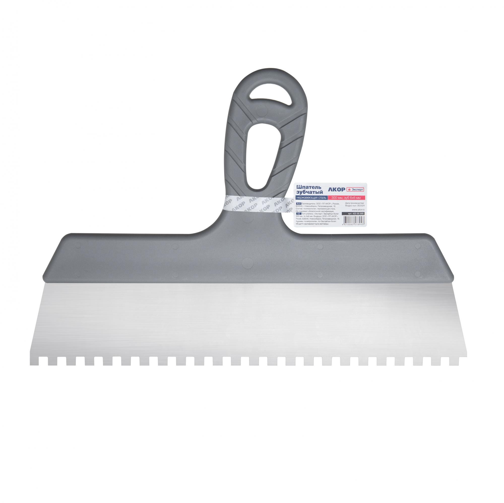 Шпатель зубчатый «Эксперт» из нержавеющей стали 300мм, 6х6мм