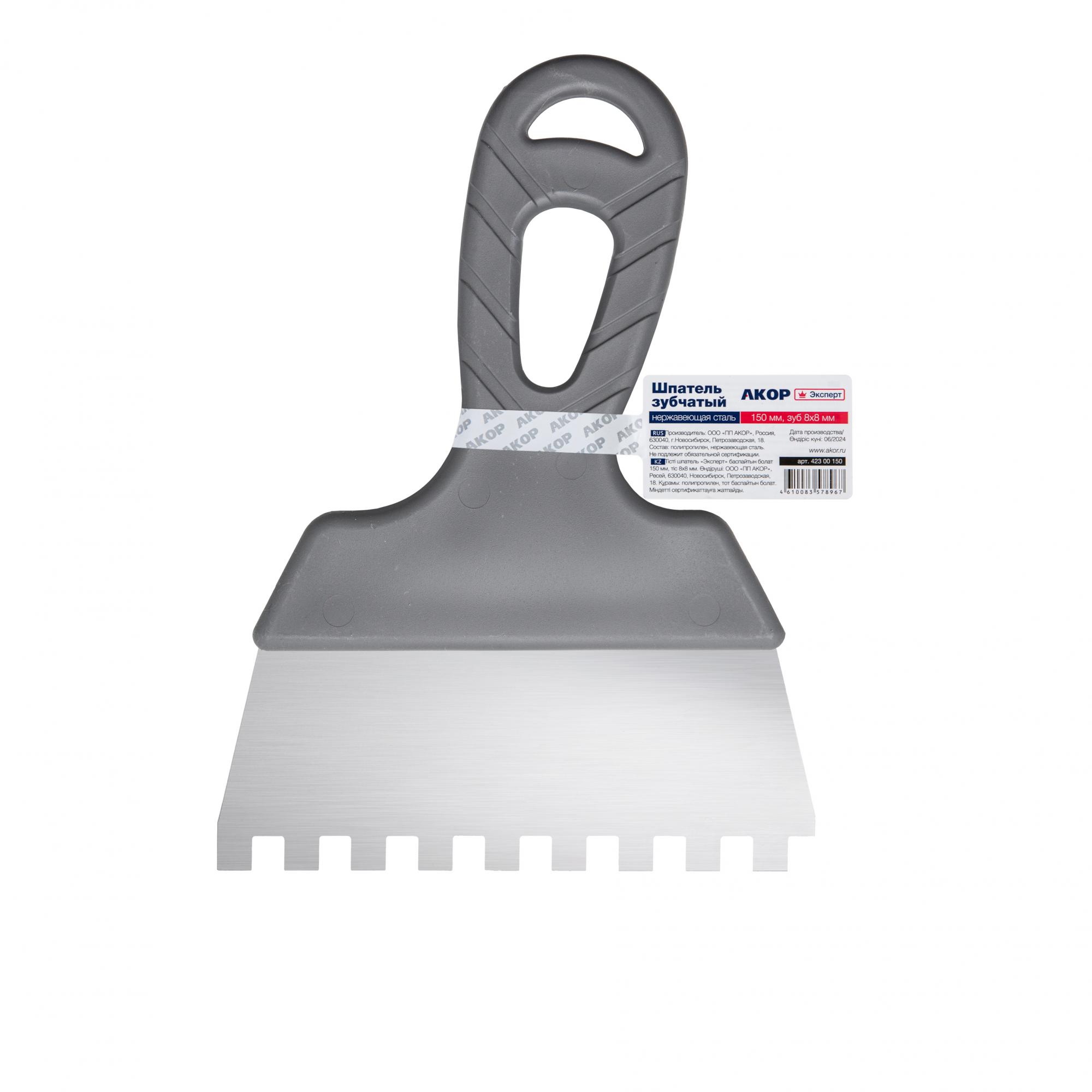 Шпатель зубчатый «Эксперт» из нержавеющей стали 150мм, 8х8мм