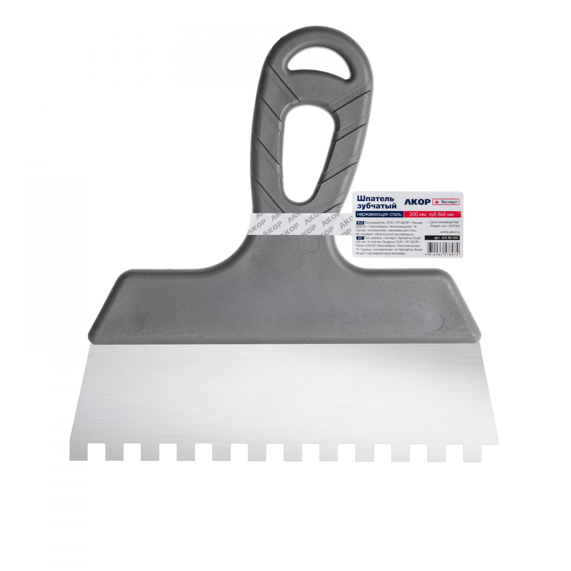 Шпатель зубчатый «Эксперт» из нержавеющей стали 200мм, 8х8мм