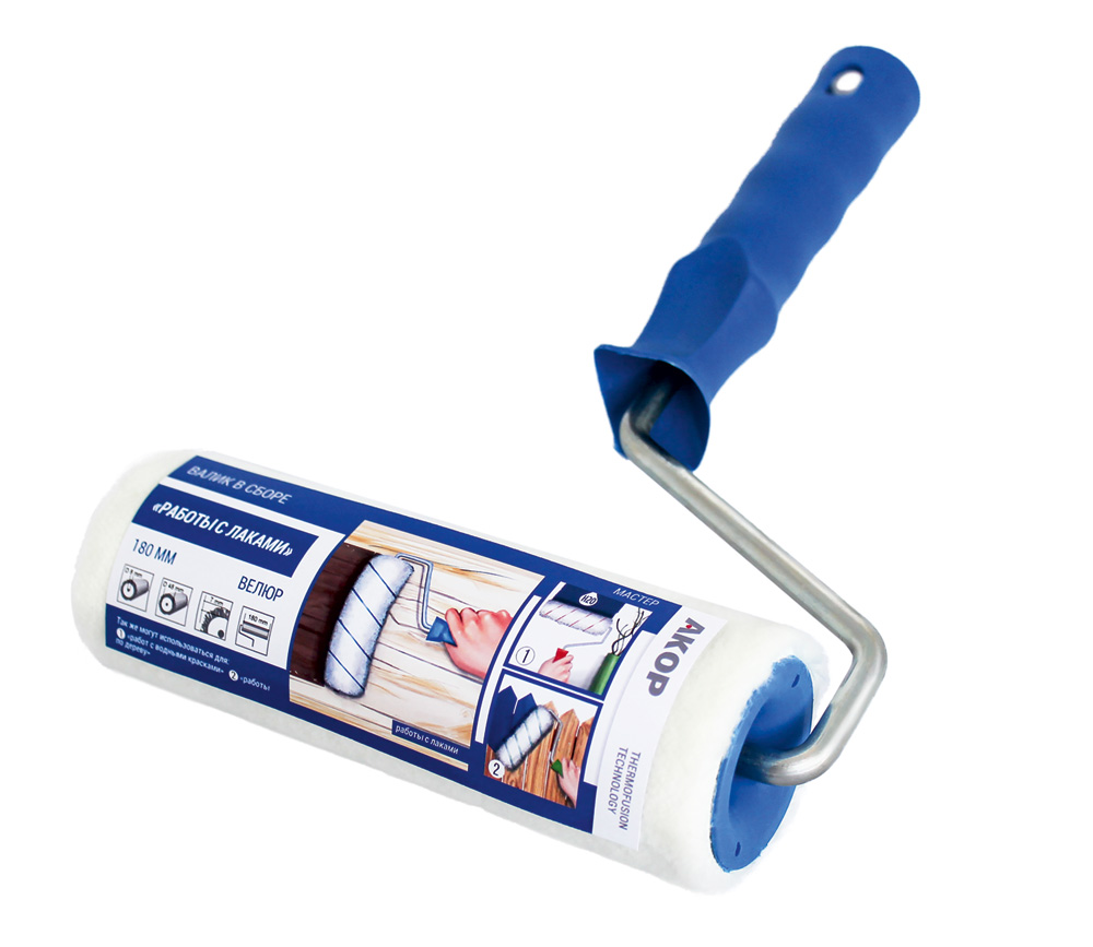 Валик 18 см в сборе велюр белый (полиакрил) d 8 мм Мастер для работ с лаками "Акор"