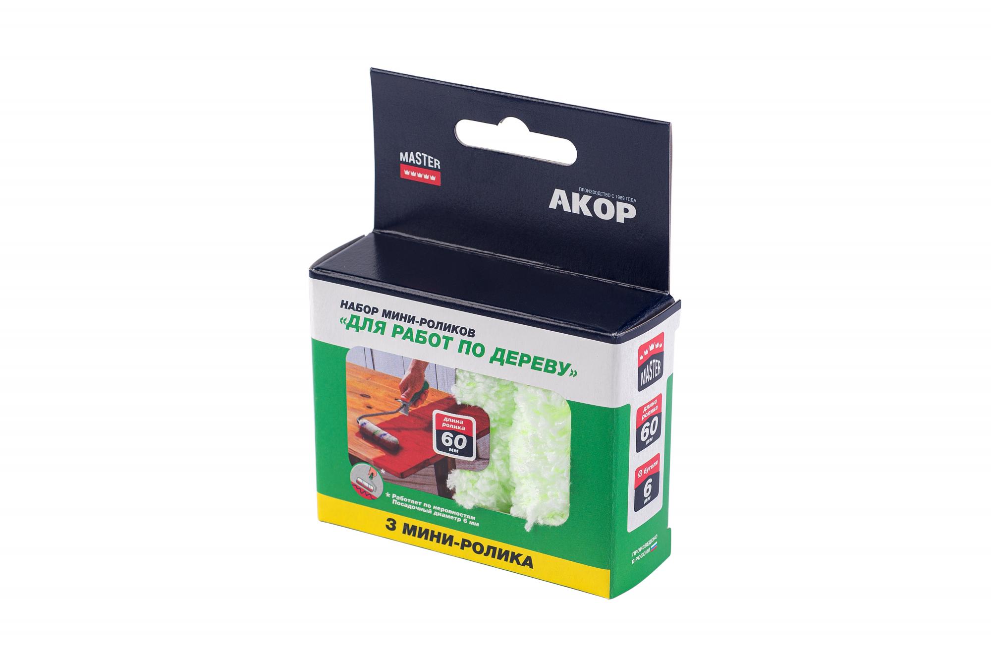 Набор мини-роликов "Для работ по Дереву" 60 мм, SELF BOX 3 шт "Акор"