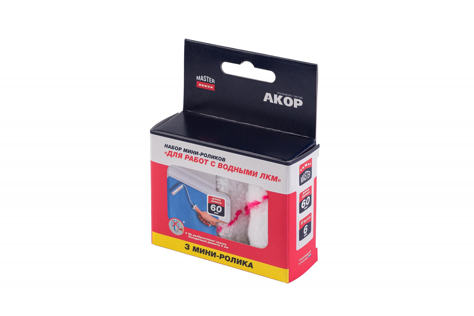 Набор мини-роликов "Для работ с Водными ЛКМ" 60 мм, SELF BOX 3 шт "Акор"