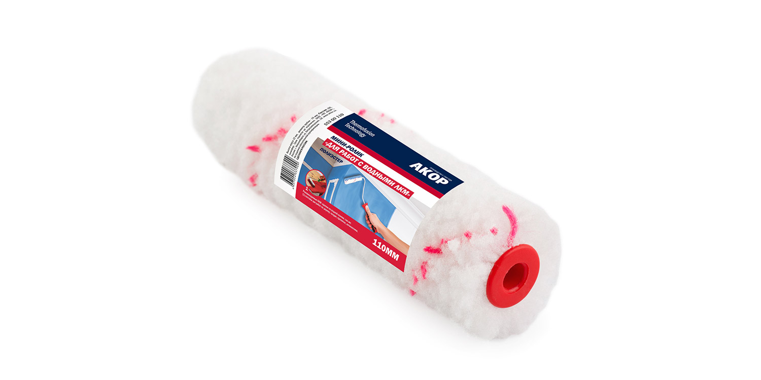 Мини-ролик 11 см полиэстер d 6 мм для водных красок "Акор"
