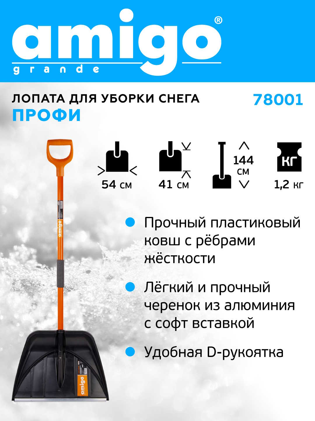 AMIGO Лопата для уборки снега ПРОФИ 78001 (Ш54смхВ41см)