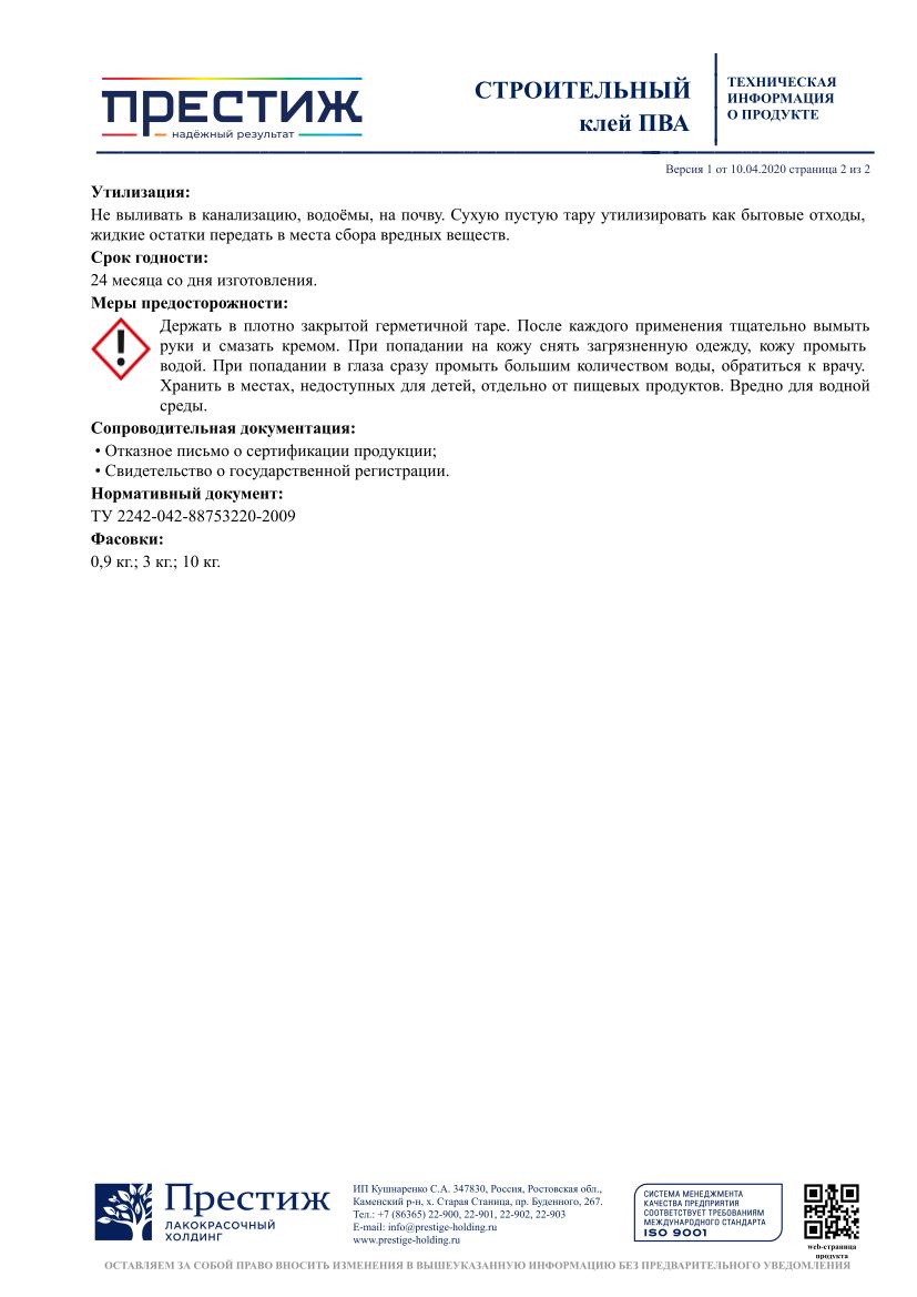 Клей ПВА строительный ПРЕСТИЖ 3кг