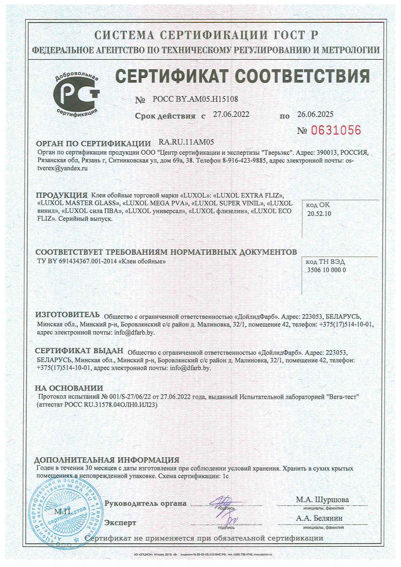 Клей обойный «LUXOL сила ПВА» (Standart) 200 г, пакет