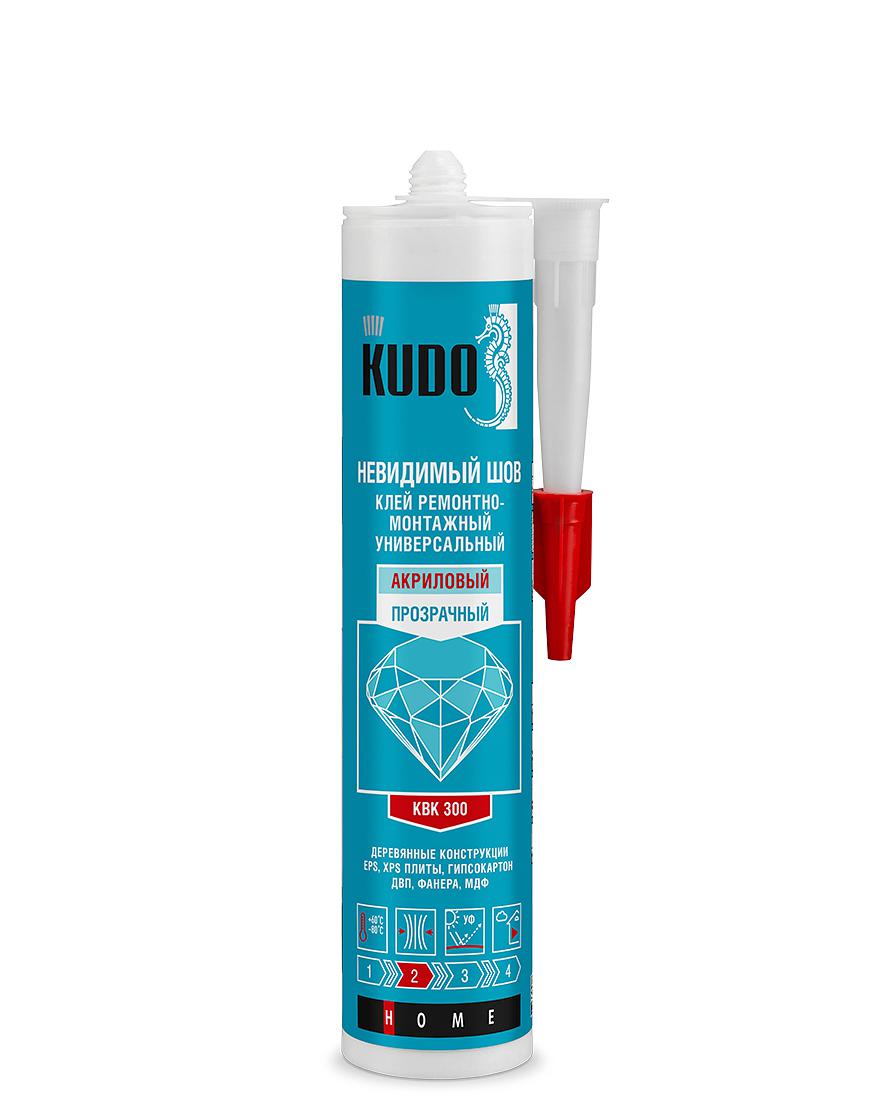 Клей KUDO ремонтно-монтажный "Невидимый шов" на акриловой основе, прозрачный 280 мл