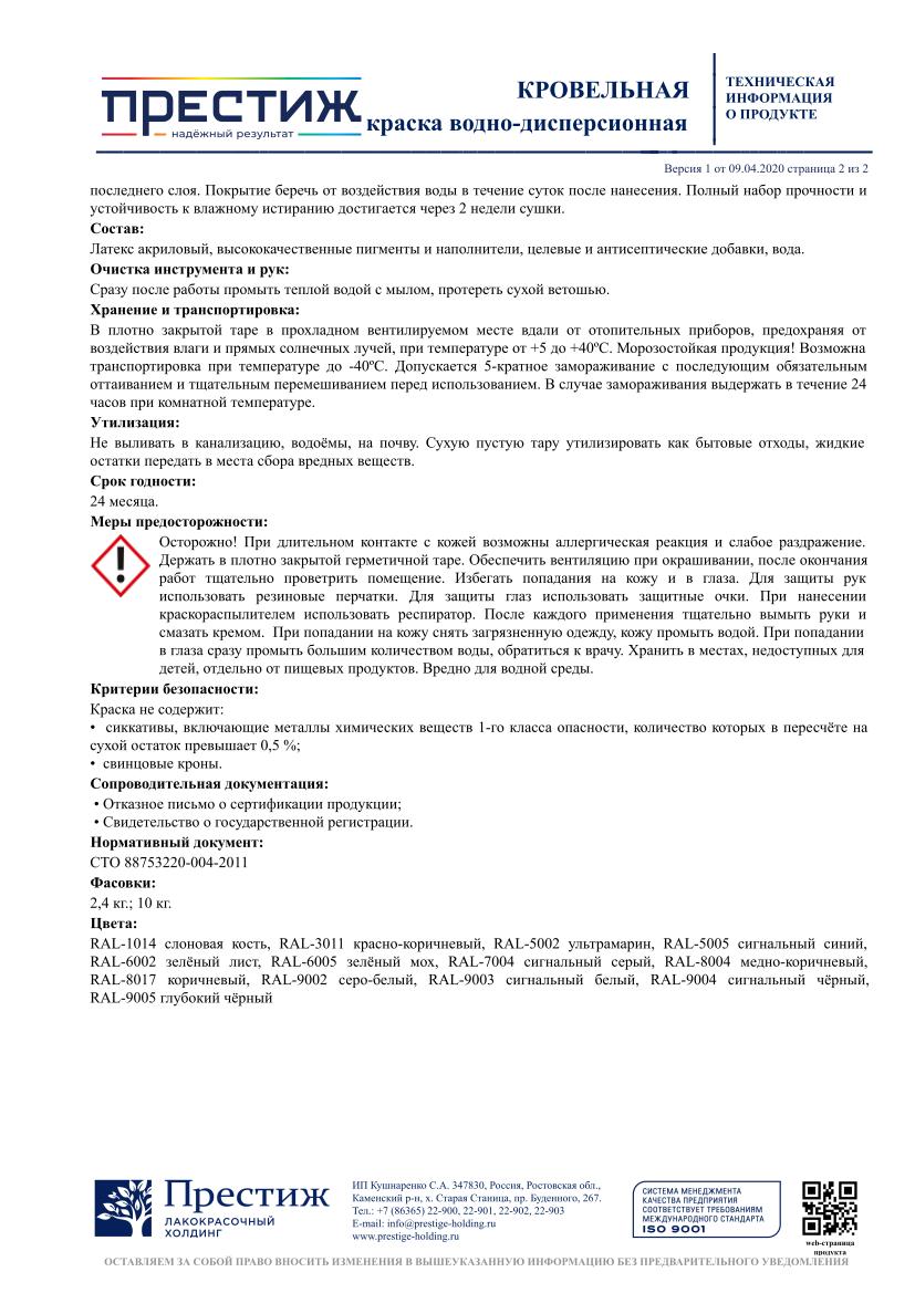 Краска ПРЕСТИЖ акриловая кровельная глубокий черный RAL-9005 10 кг