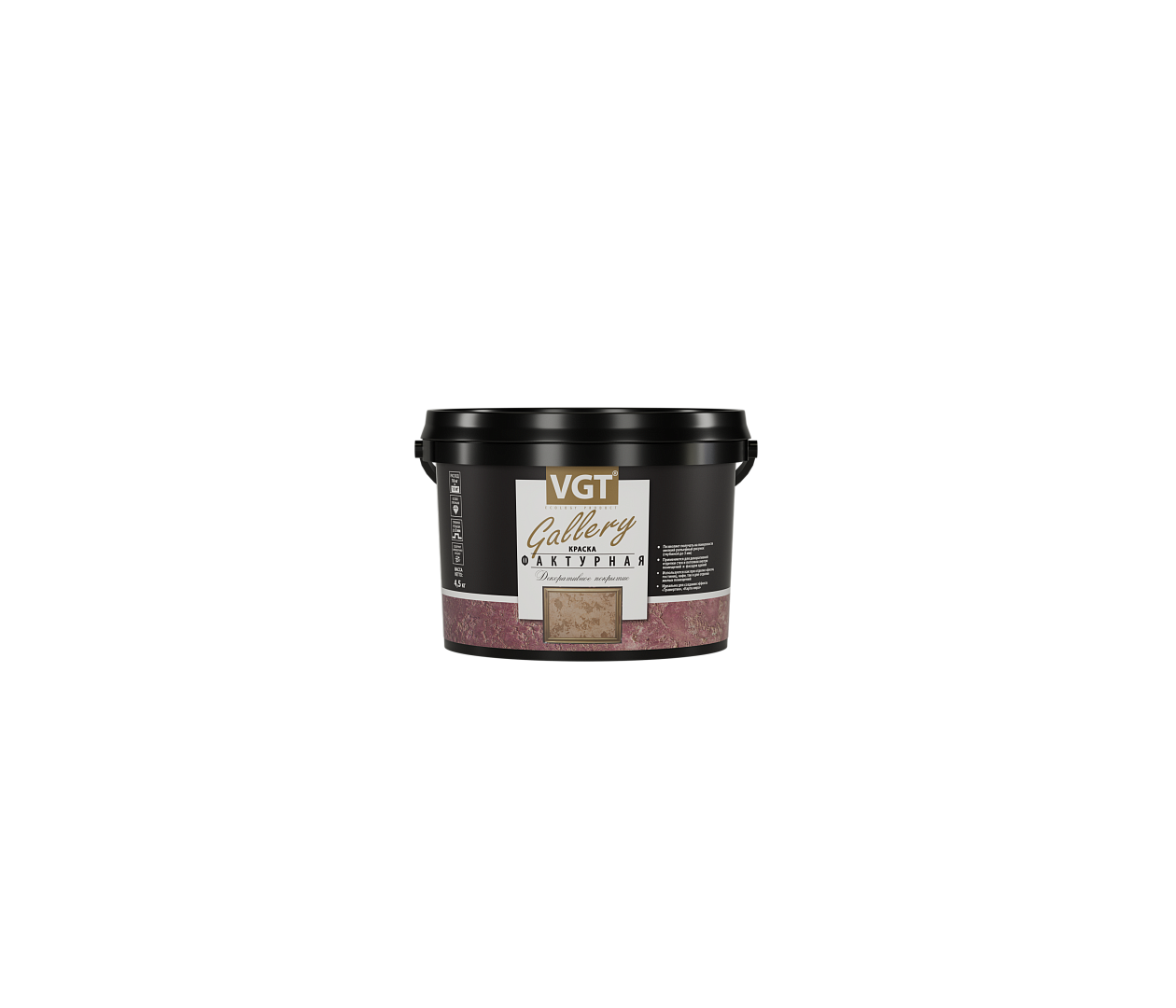 После высыхания краска образует декоративное рельефное покрытие глубиной до 3 мм, скрывающее мелкие дефекты стен. Отличается высокой твёрдостью, атмосферостойкостью, образует «дышащее» покрытие. Материал наносится гибким металлическим шпателем на поверхность. Сразу после нанесения идёт стадия придания рельефа. В зависимости от используемого инструмента (валик, шпатель, трафарет и др.) можно получить различный рисунок (открытое время работы около 15 минут).