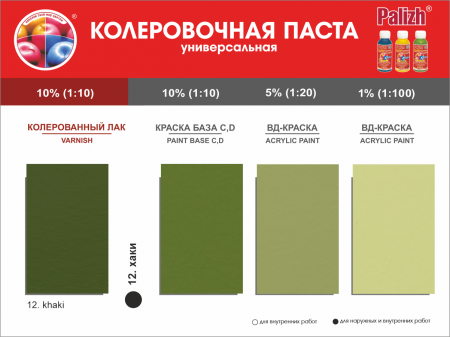 №12 Колер "Palizh" STANDART универсальный 0,1 л (160 г ) хаки (Ижевск)