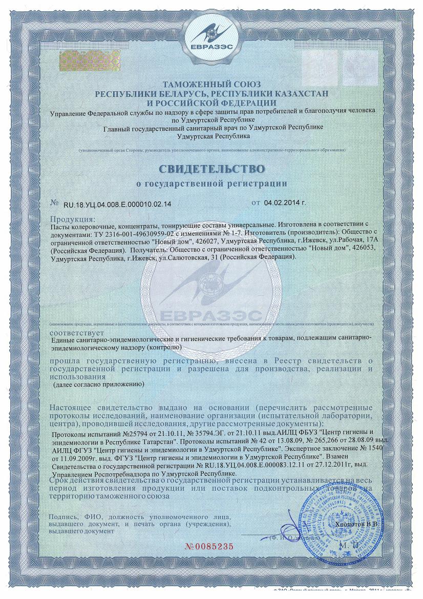 Светлые тона получаются при введении пасты 0,1– 0,5% от веса колеруемого материала. Позволяет колеровать глубокие тона. Паста содержит пигменты, обладающие высокой светостойкостью и атмосферостойкостью.