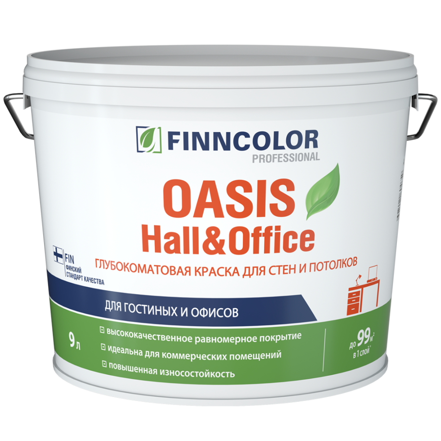 Краска Финколор OASIS HALL@OFFICE C для стен и потолков устойчивая к мытью 9 л