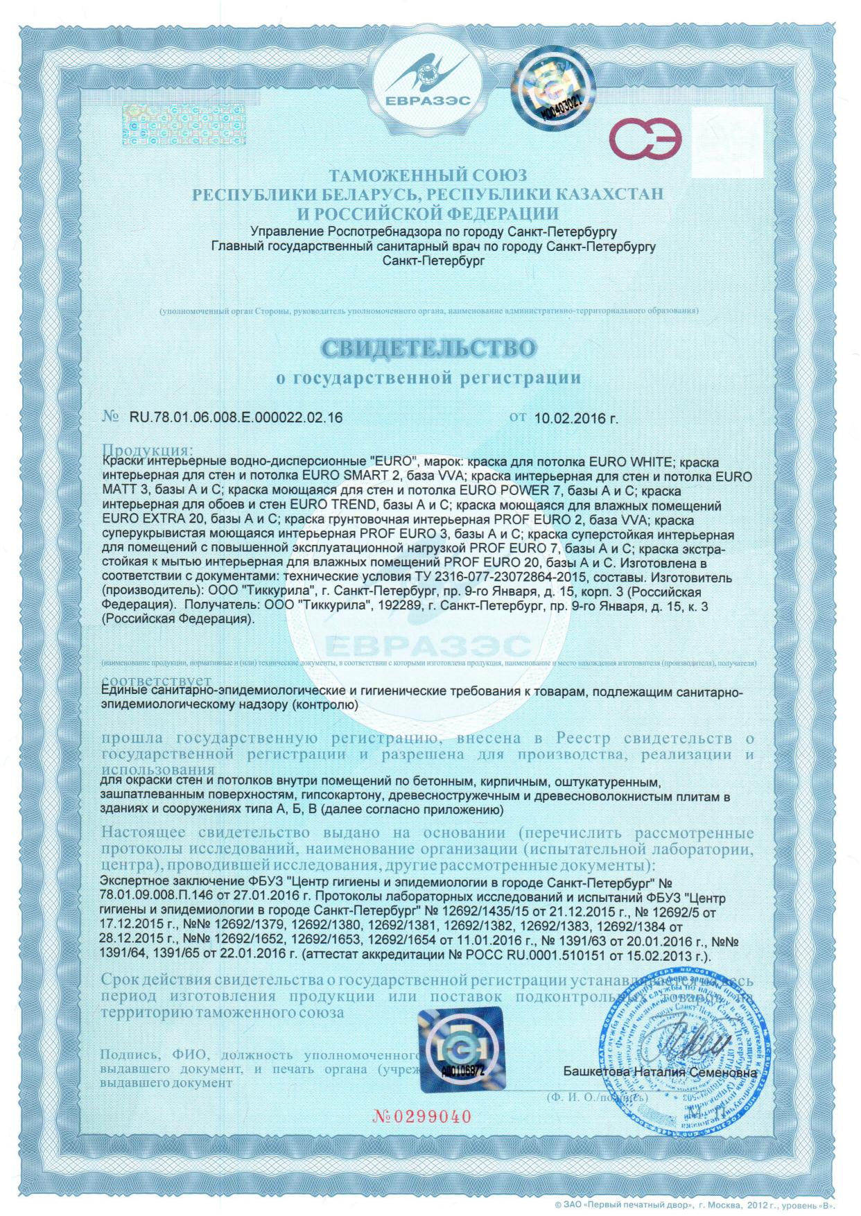 Краска Тиккурила ЕВРО 7 POWER А матовая интерьерная стойкая к мытью 0,9л