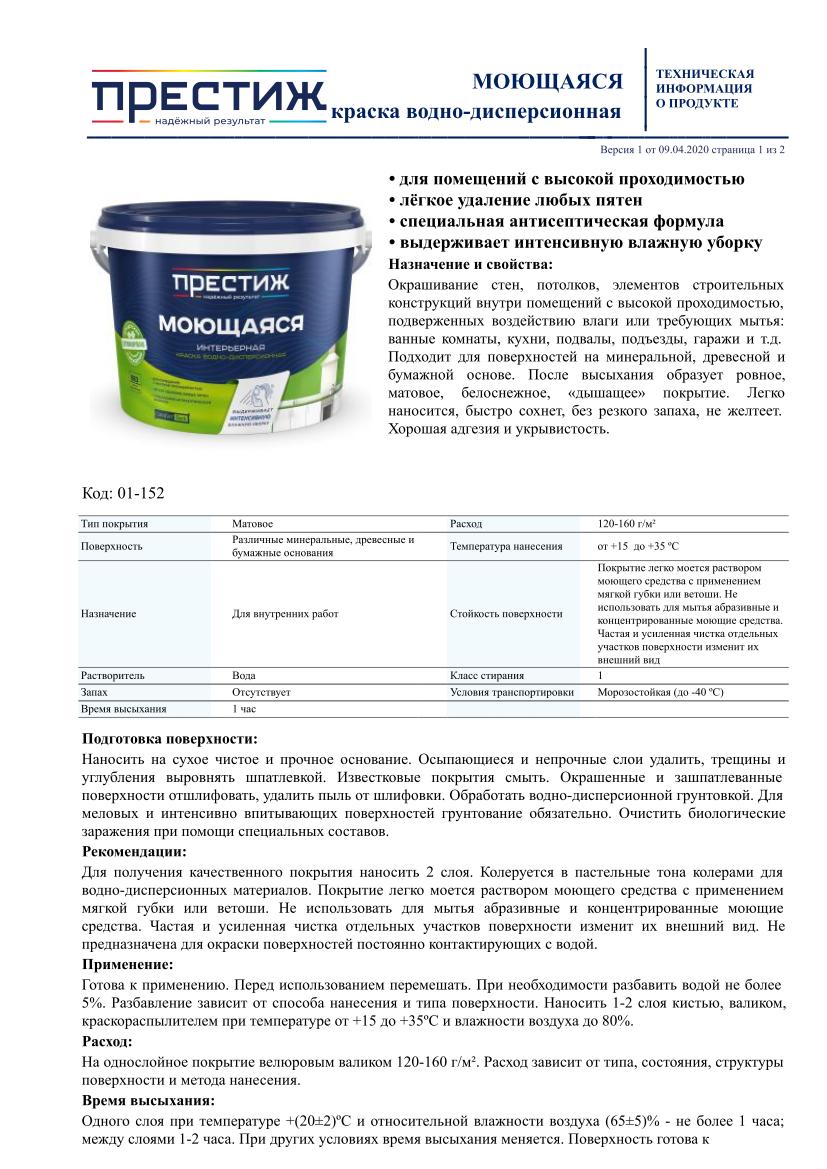 Расход на однослойное покрытие: 120-160 г/м². Для получения качественного покрытия рекомендуется двухслойное нанесение краски.
