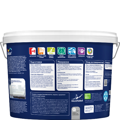 Для внутренних работ. Подходит для нанесения на полностью просохшие и гладкие минеральные поверхности (бетон, штукатурка, кирпич и т. п.), гипсокартон, обои под покраску. Рекомендуется для окрашивания помещений с умеренной влажностью, таких как спальни, гостиные, кладовки, кабинеты, подсобные помещения. Особенно рекомендуется для окраски помещений в малогабаритных квартирах с низкими потолками. Сертифицирована для применения в детских и лечебно-профилактических учреждениях.