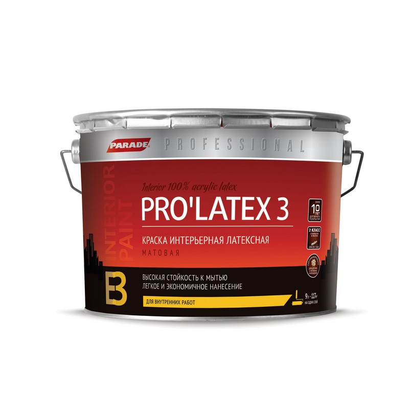 Краска PARADE PRO'LATEX E3 база А 9л матовая