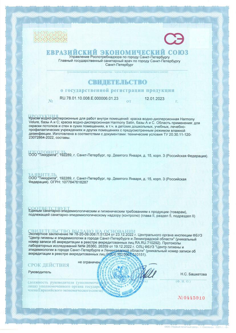 Краска Тиккурила HARMONY SATIN А для интерьеров шелковисто-матовая 0,9л