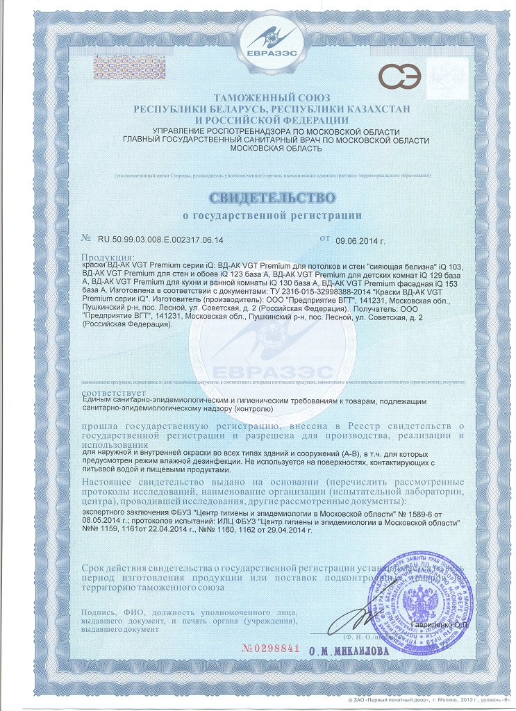 Краска VGT PREMIUM для детских комнат IQ 129 база А 9л (14кг)