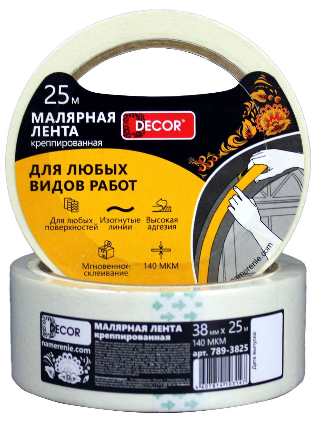 Лента малярная DЕCOR 38 мм х 50 м, креппированная 140 мкм