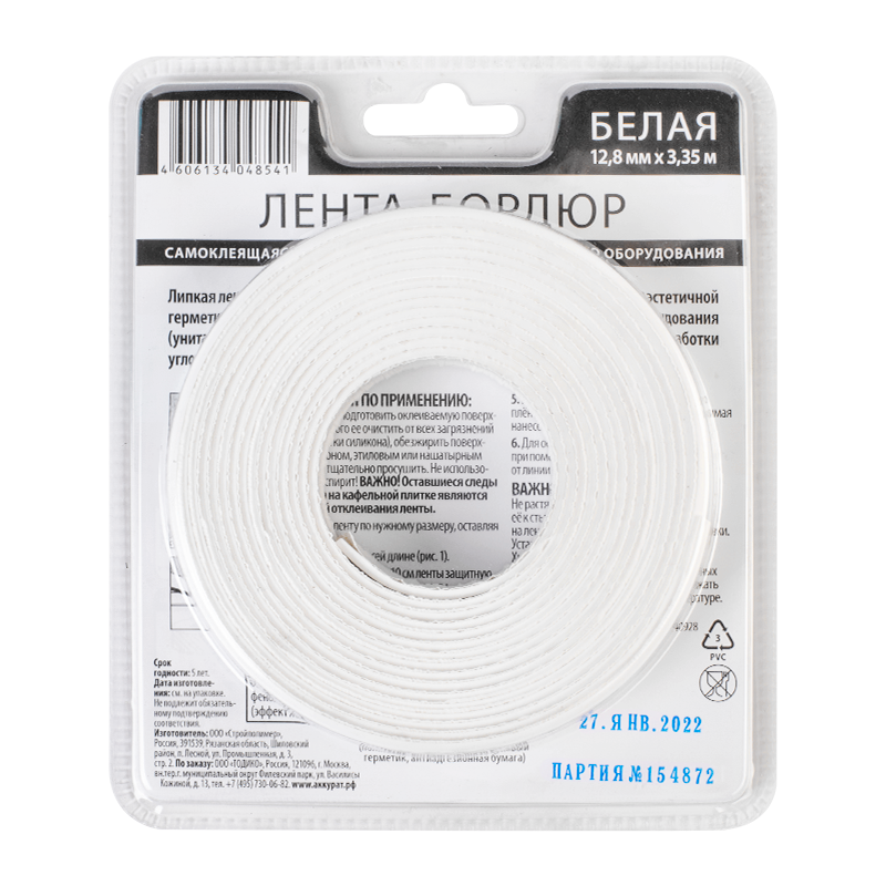 Лента бордюрная Аккурат 12,8мм х3,35м белая