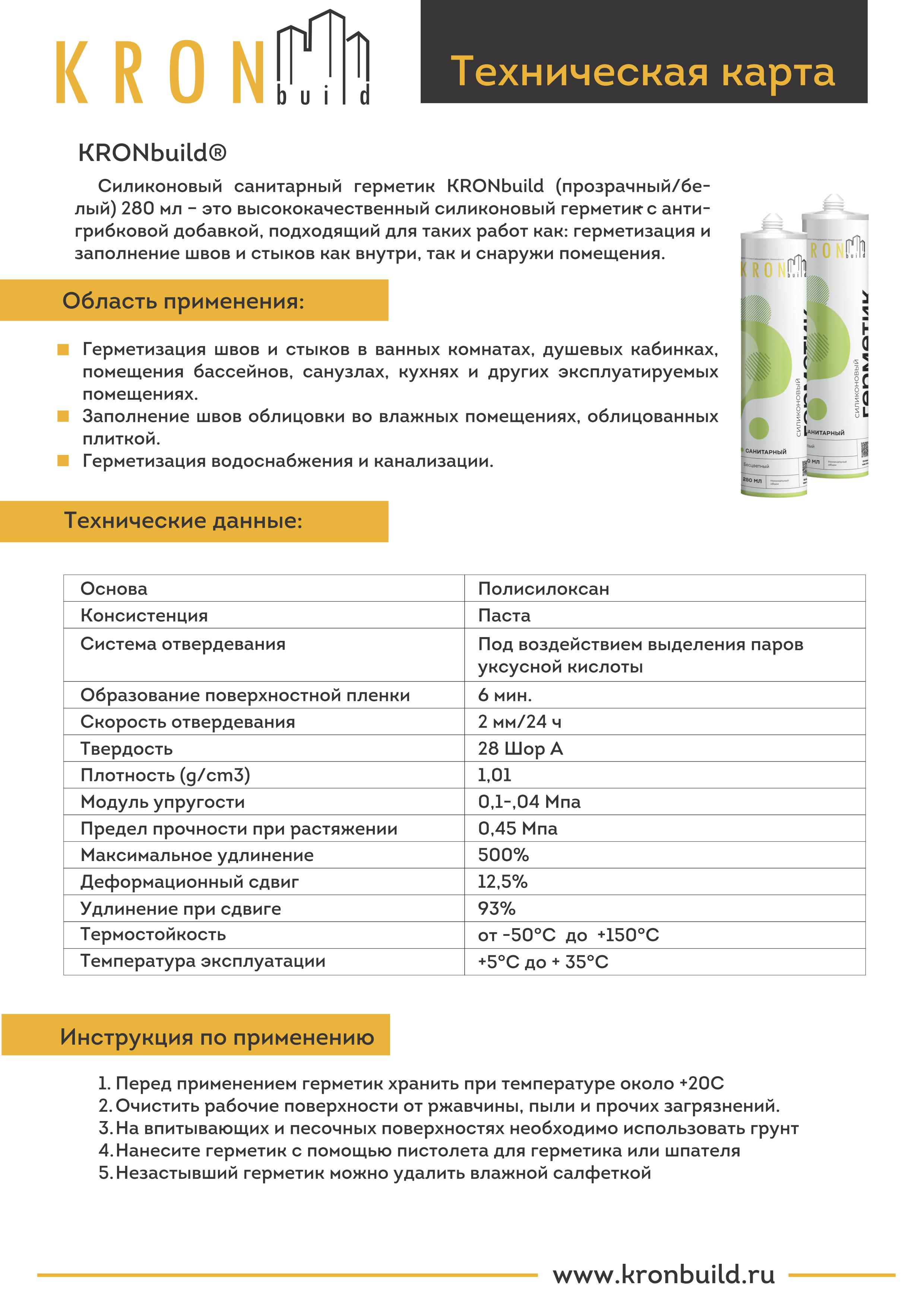 Герметик силиконовый KRONbuild санитарный белый 280мл