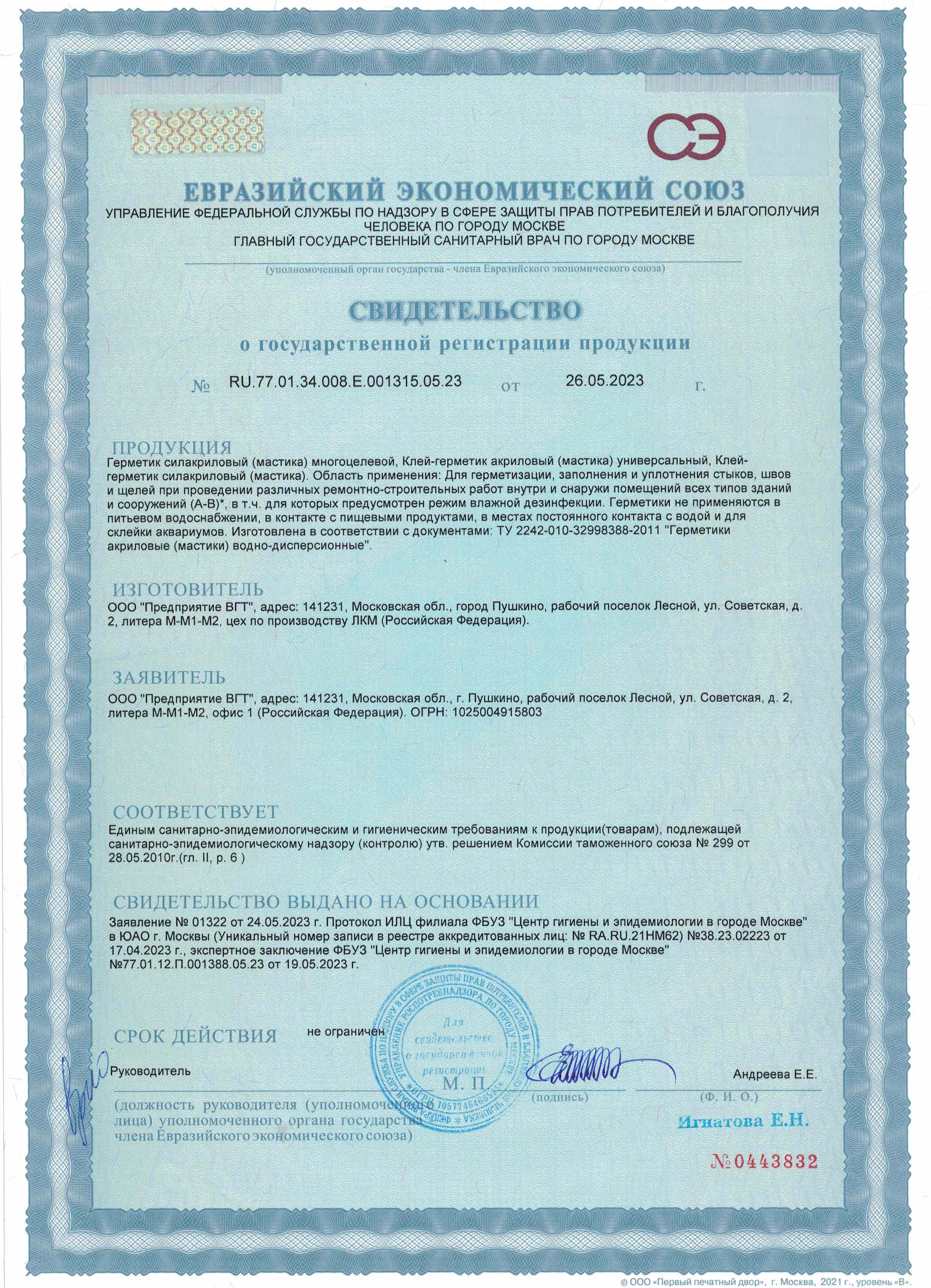 Клей-герметик (мастика) акриловый универсальный белый 0,28кг картридж VGT неморозостойкий